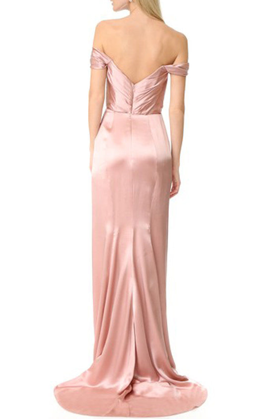 Vestido de fiesta largo de satén con hombros descubiertos en color rosa de MACloth
