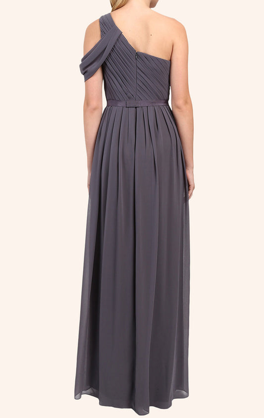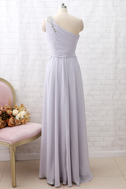 Vestido de dama de honor largo de gasa con un hombro descubierto MACloth, vestido formal gris