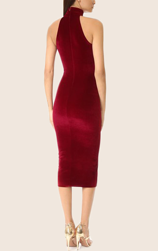 Vestido de cóctel midi de cuello alto con corte tubo MACloth en color burdeos