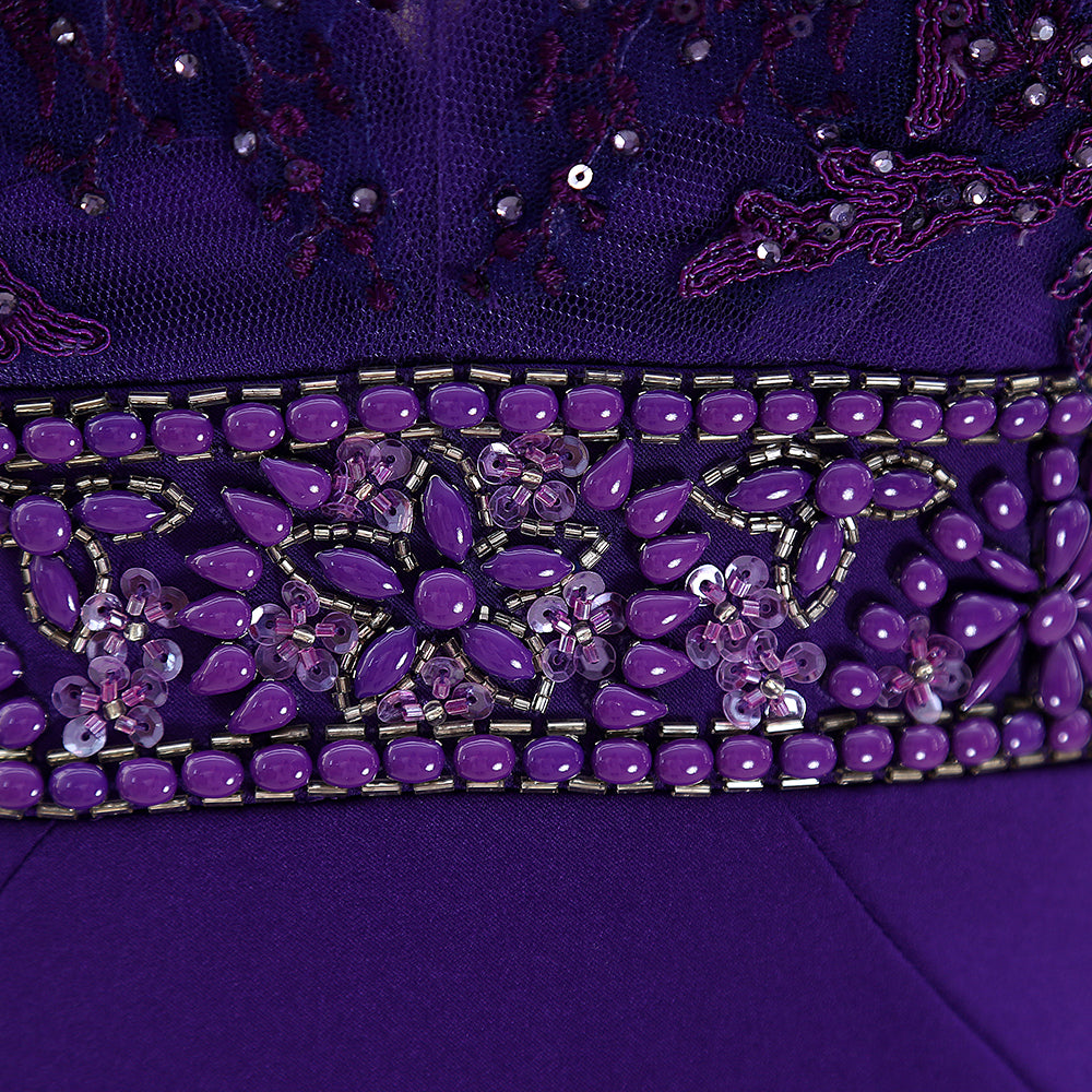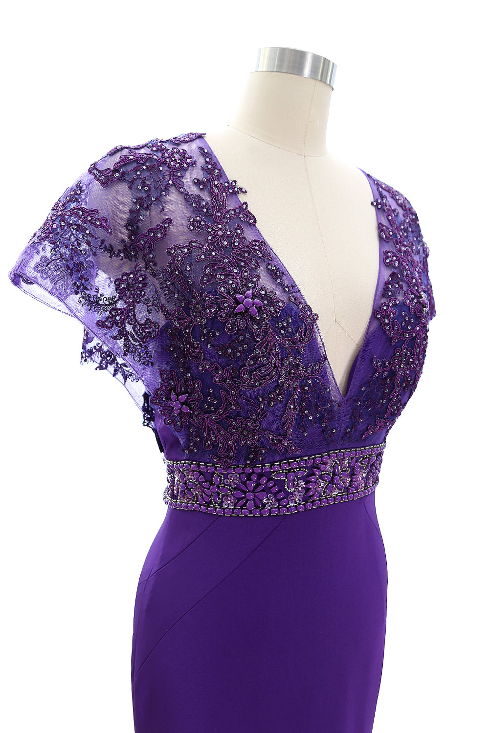 El encaje con cuentas resalta el busto con detalles de ilusión para un estilo adicional. Este magnífico vestido de noche ofrece un escote en V con mangas cortas. Está hecho de satén, encaje y tul suave.