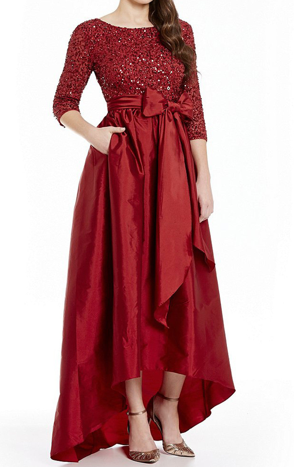 Vestido de noche formal con lentejuelas en azul marino oscuro para madre de la novia con media manga y corte alto bajo de MACloth