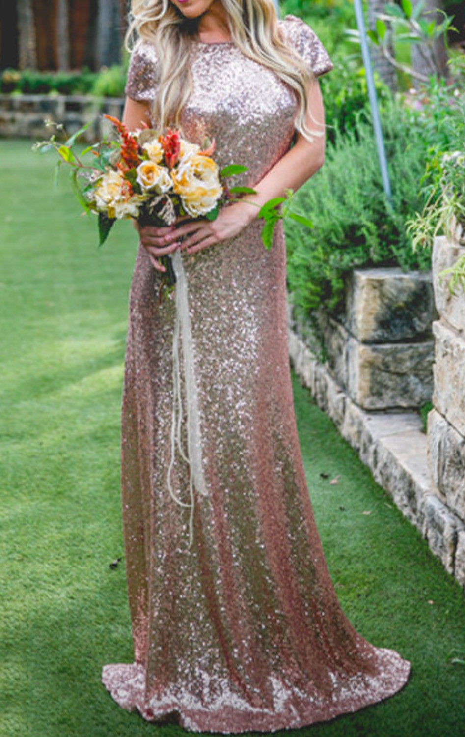 Vestido de noche largo con lentejuelas y mangas cortas de MACloth, vestido de dama de honor azul marino oscuro