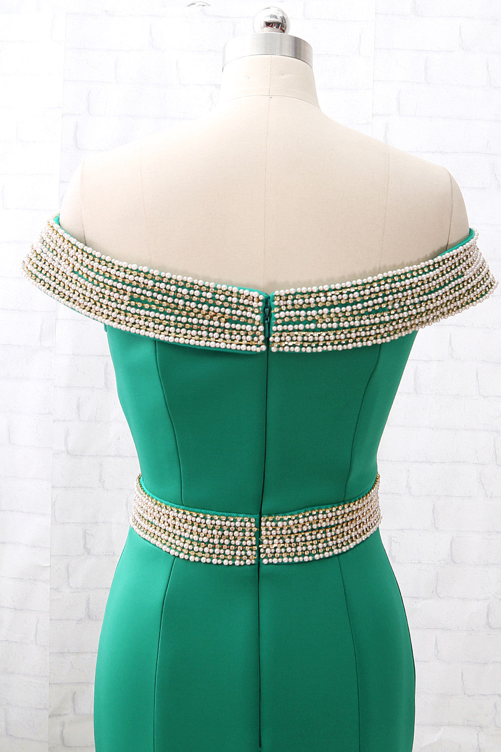 Vestido de fiesta verde con hombros descubiertos y corte sirena de MACloth, vestido de noche formal sexy
