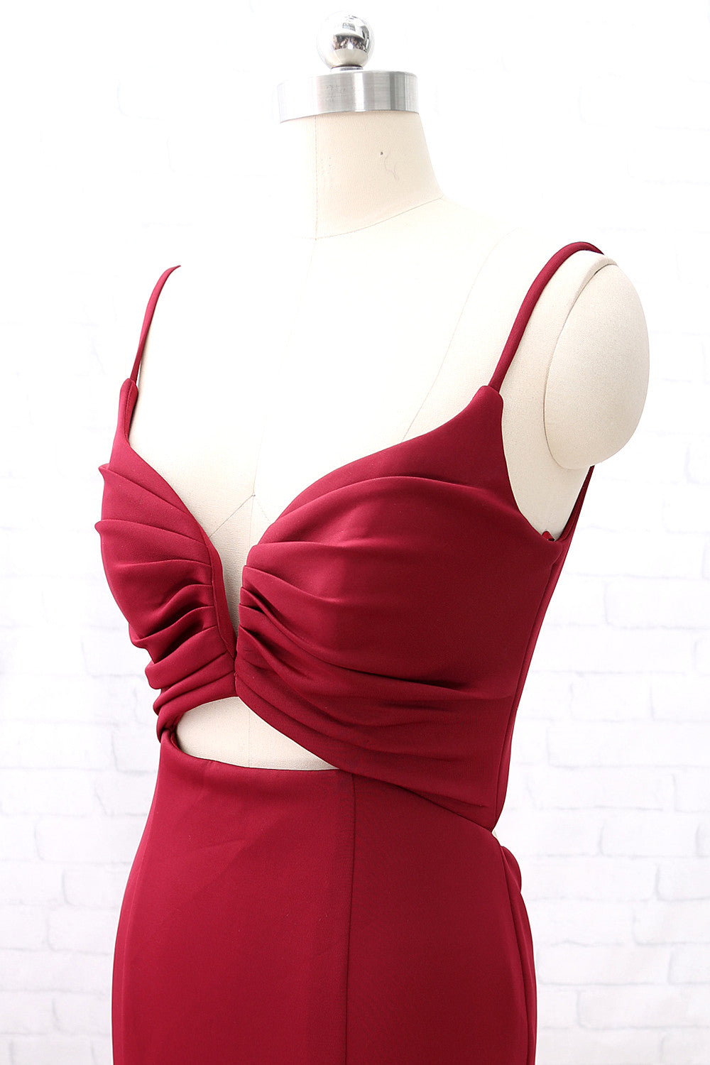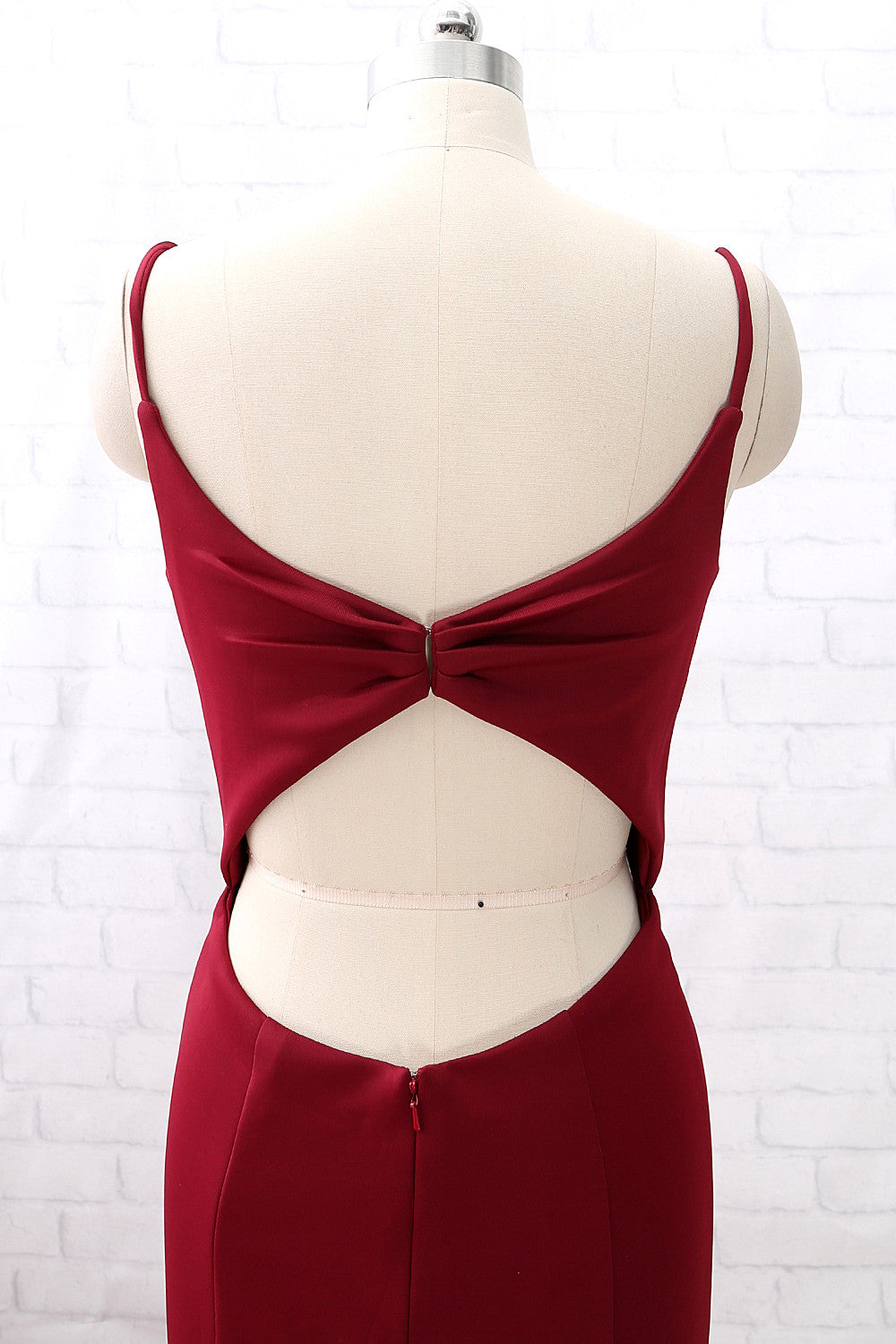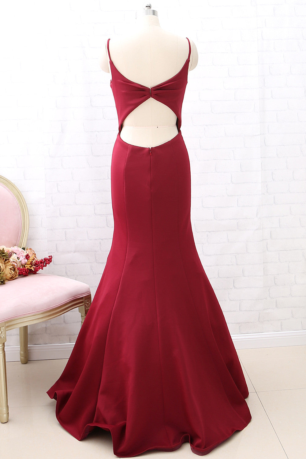 Vestido de fiesta largo de sirena con escote en V y tirantes de MACloth en color burdeos, vestido de noche formal con aberturas