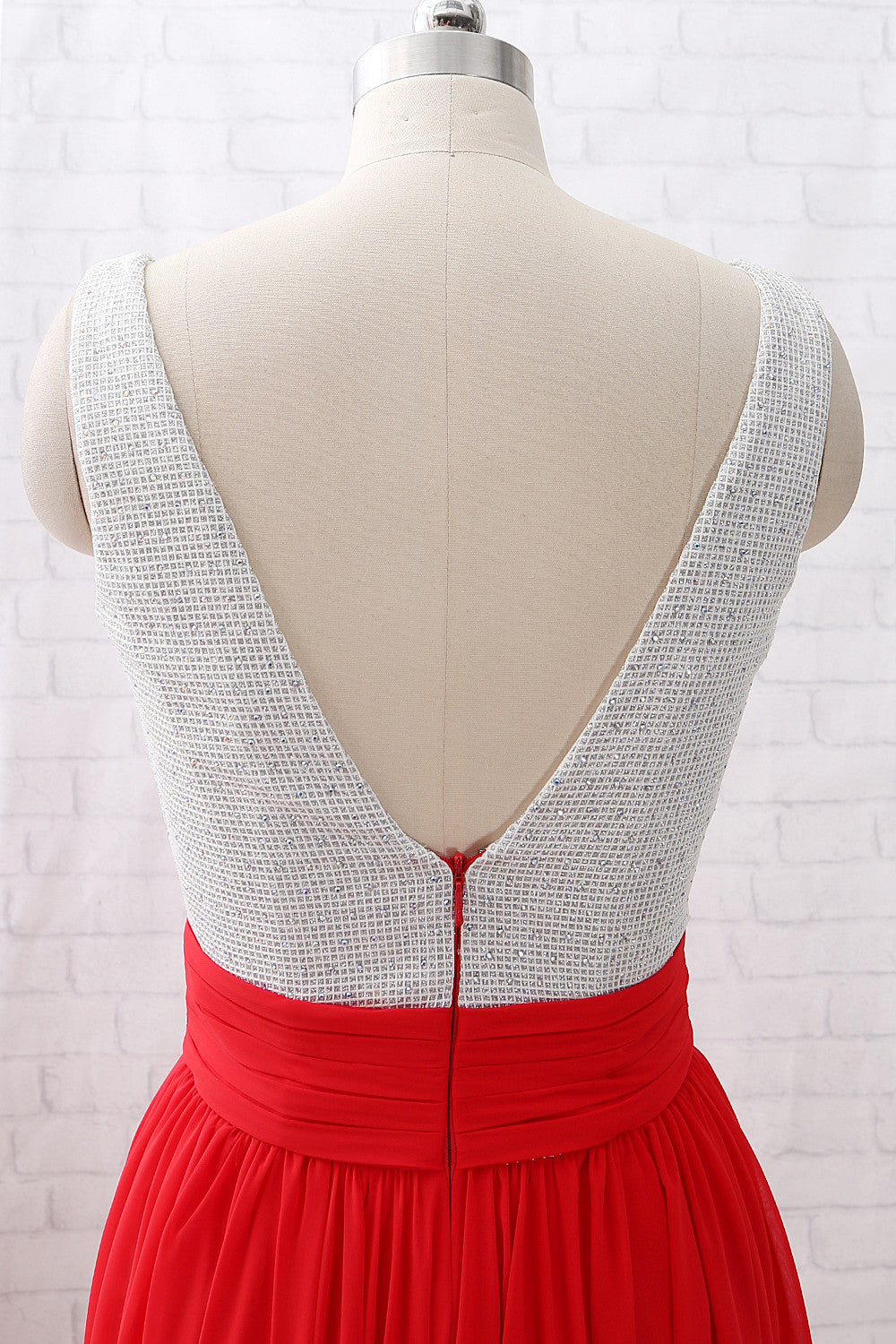 Vestido de fiesta largo de gasa con escote en V y tirantes MACloth en color rojo