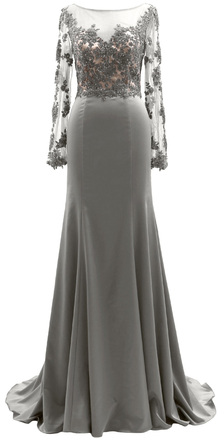 Vestido de noche de encaje con ilusión de manga larga para madre de la novia de MACloth para mujer