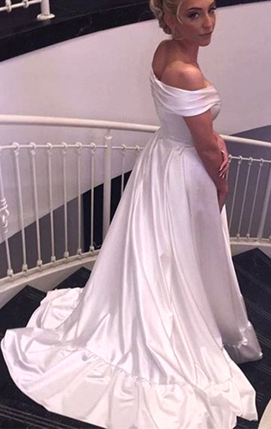 Vestido de fiesta largo de satén con hombros descubiertos de MACloth, vestido de noche formal color marfil 10725
