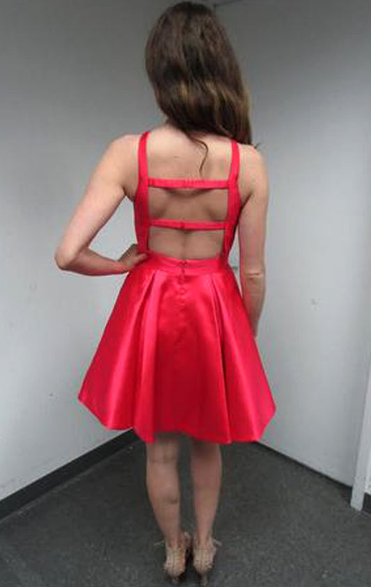 Vestido mini azul real con escote en V y tirantes de MACloth para fiesta de graduación y regreso a casa