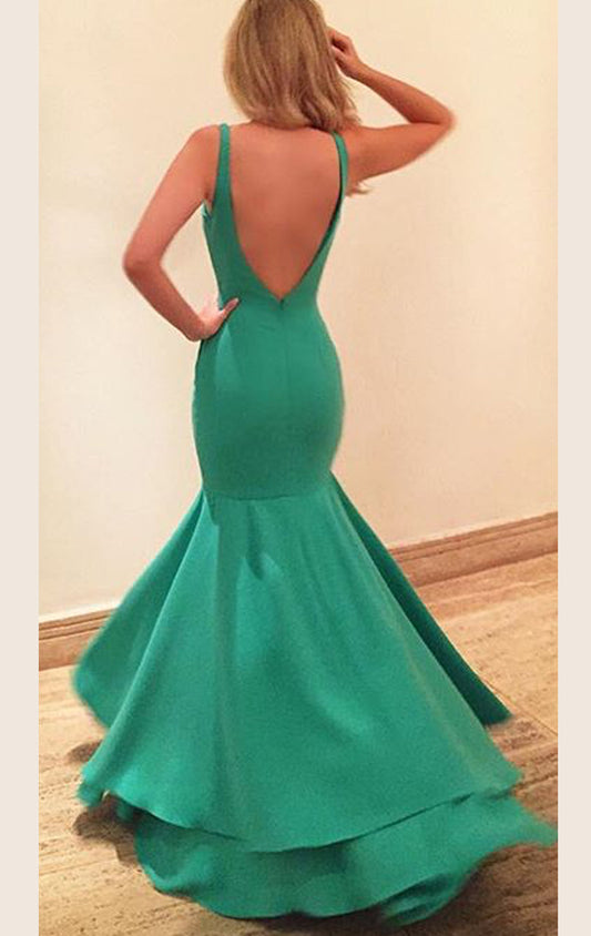 Vestido de fiesta largo de jersey con escote en forma de corazón y tirantes de sirena de MACloth, vestido formal verde