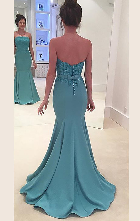 Vestido de fiesta largo de jersey de encaje sin tirantes y sirena de MACloth