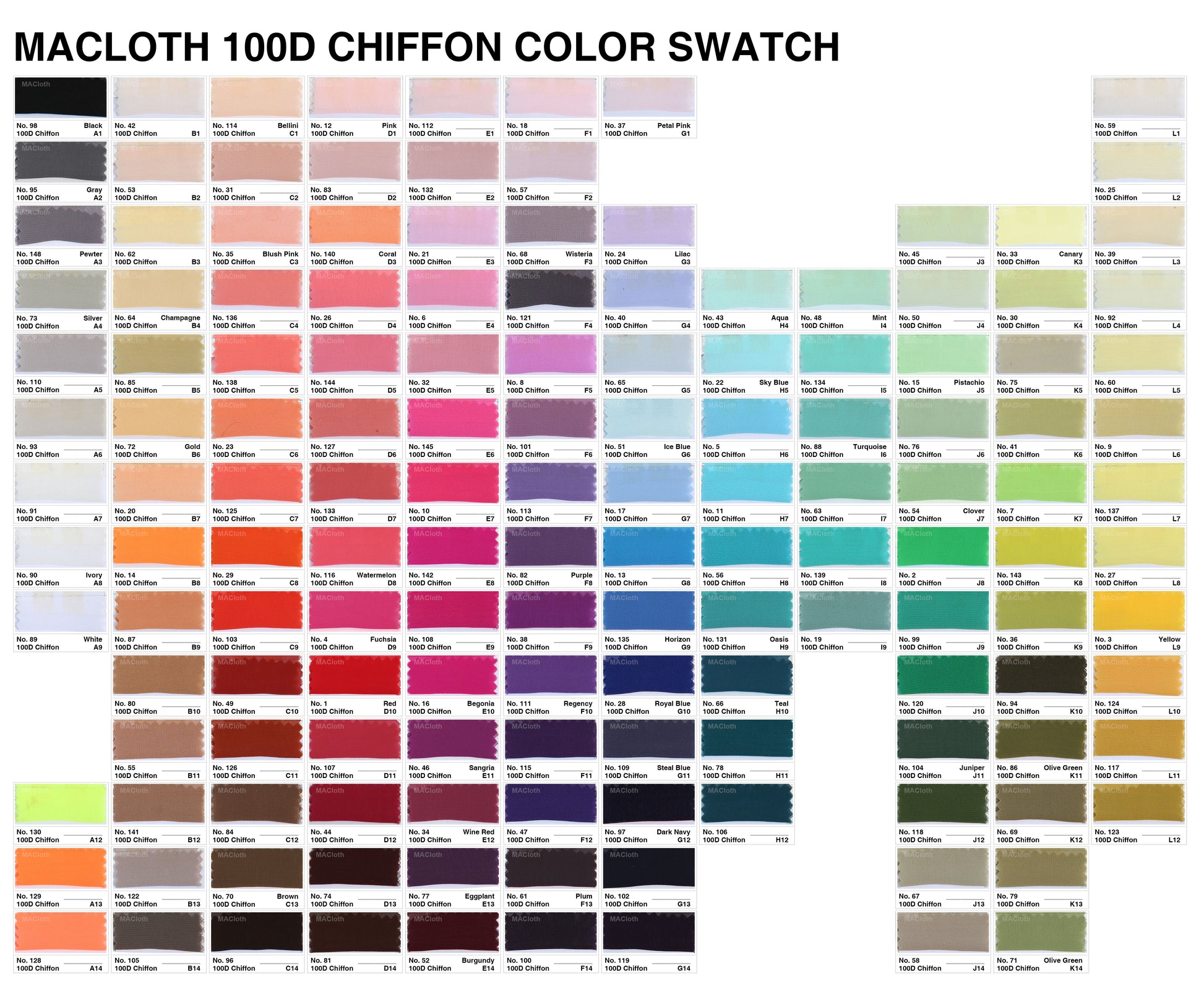 MACloth Size Chart