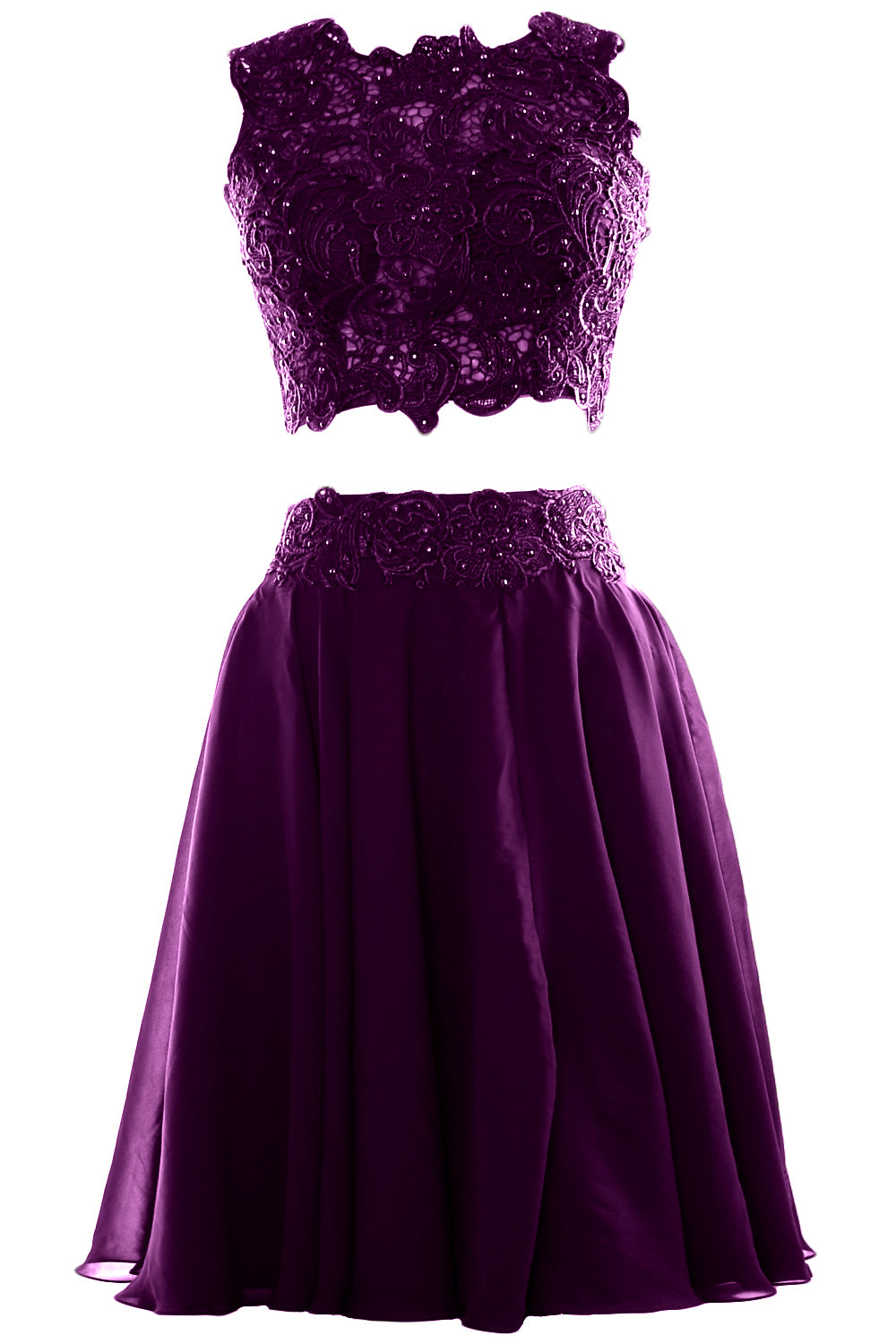 MACloth Vestido corto de gasa con encaje de dos piezas para mujer, vestido formal para fiesta de cóctel