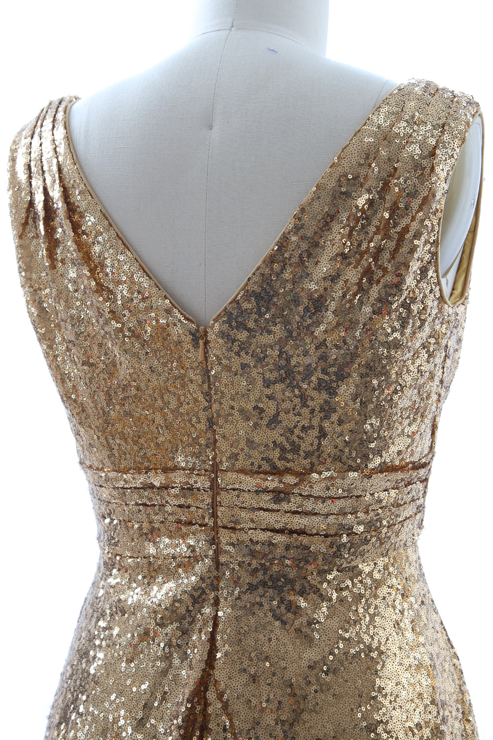 MACloth Vestidos de dama de honor para mujer Vestido de noche formal con lentejuelas sin mangas y cuello en V