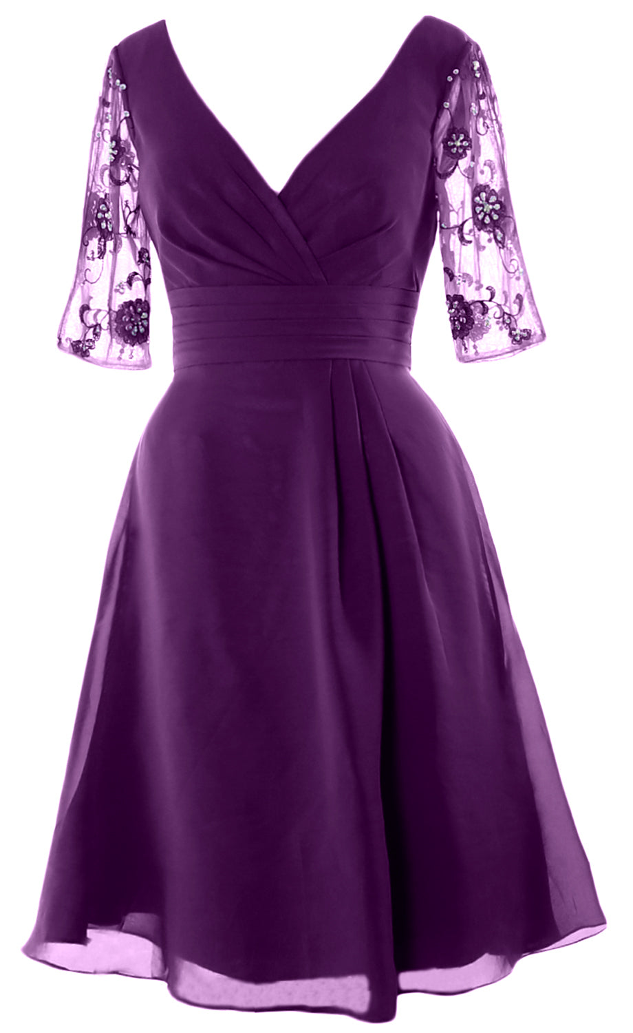 MACloth Vestidos cortos para madre de la novia, mangas cortas, escote en V, cóctel