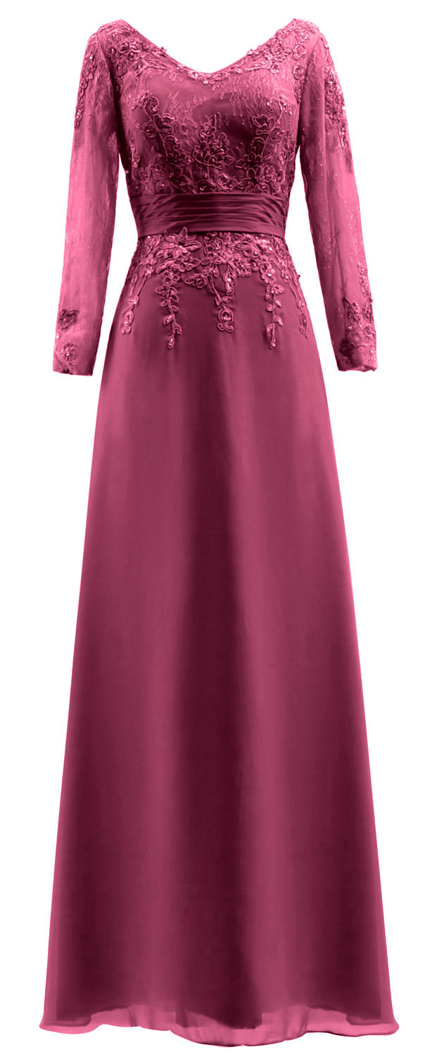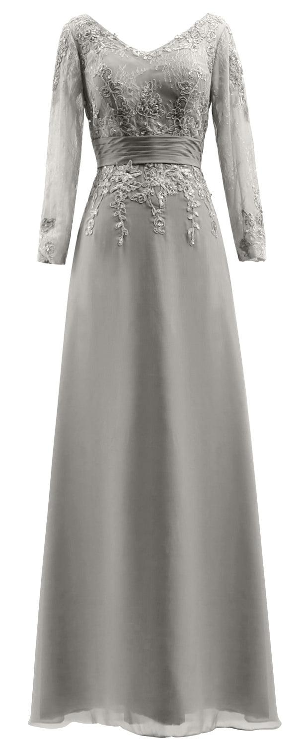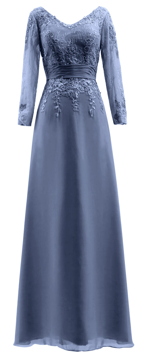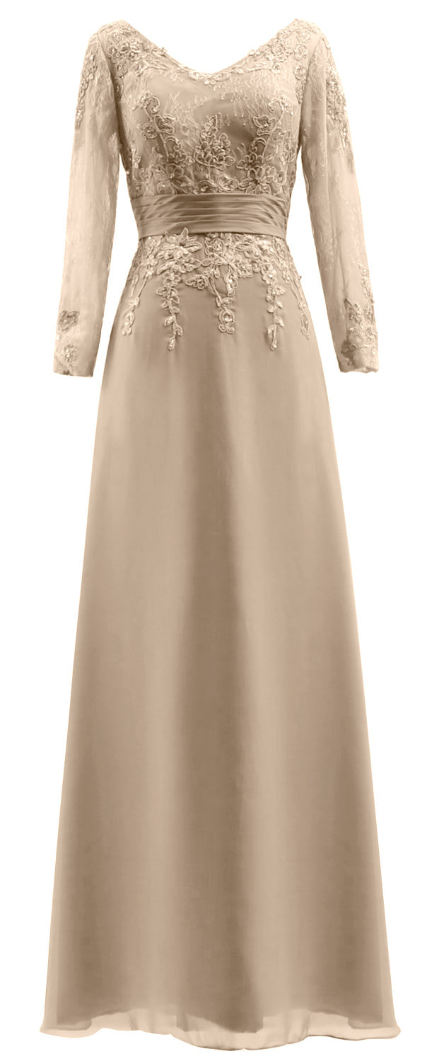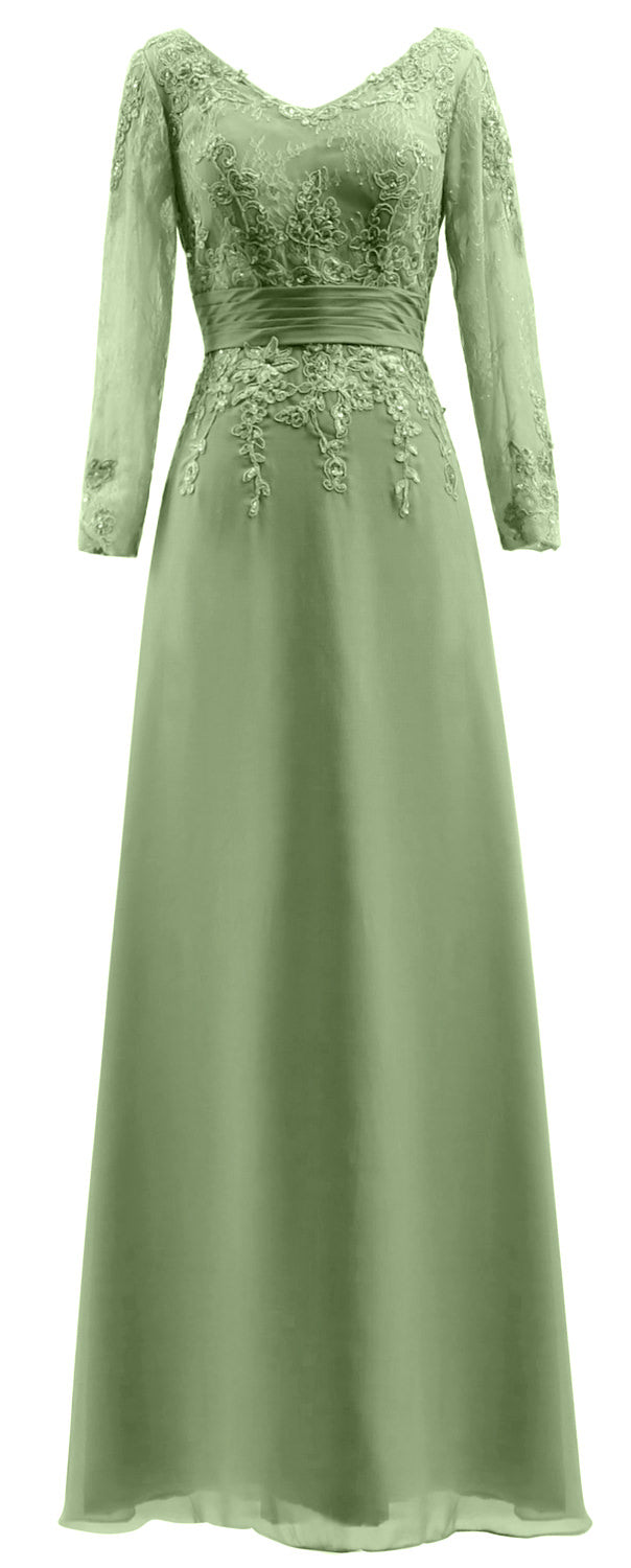 MACloth Vestidos de madre de la novia Mangas largas Cuello en V Encaje Vestido de noche formal