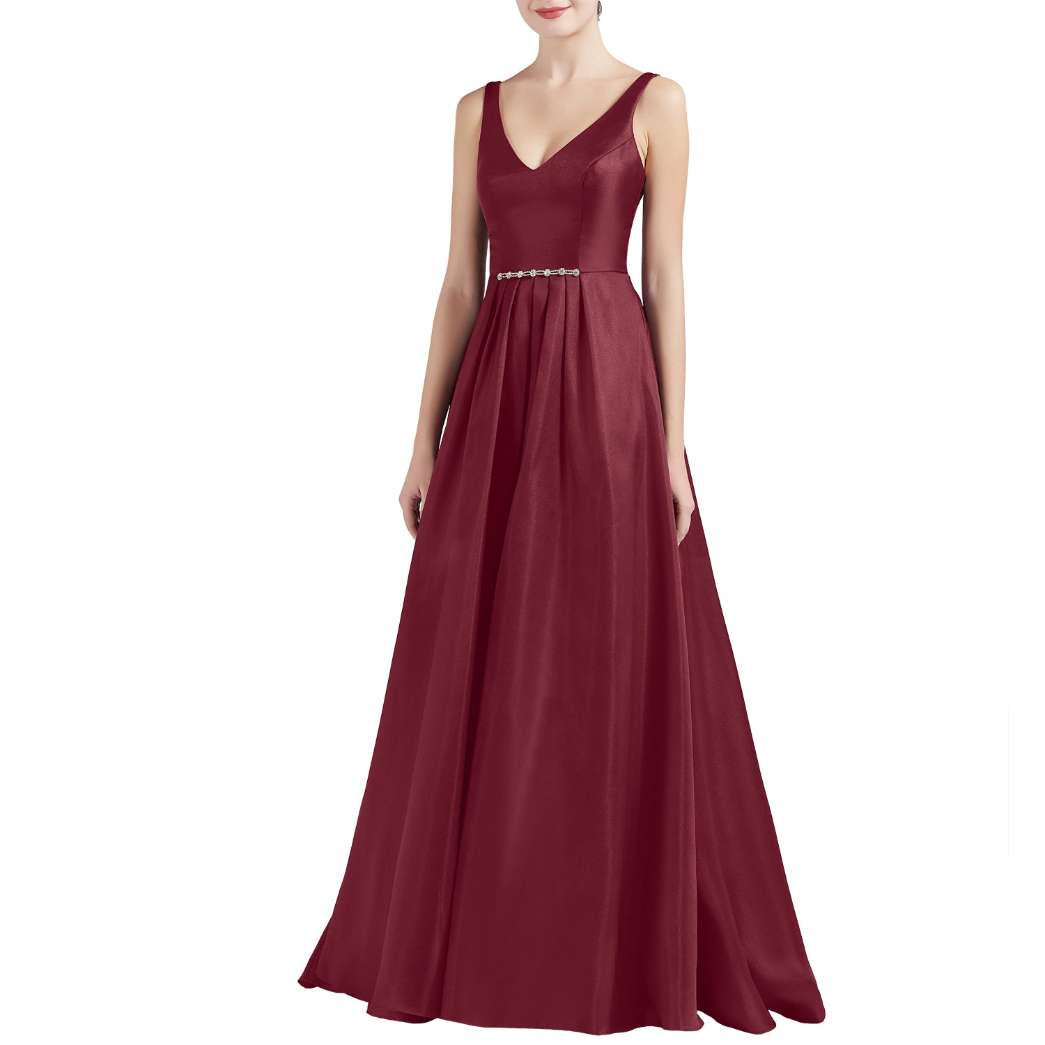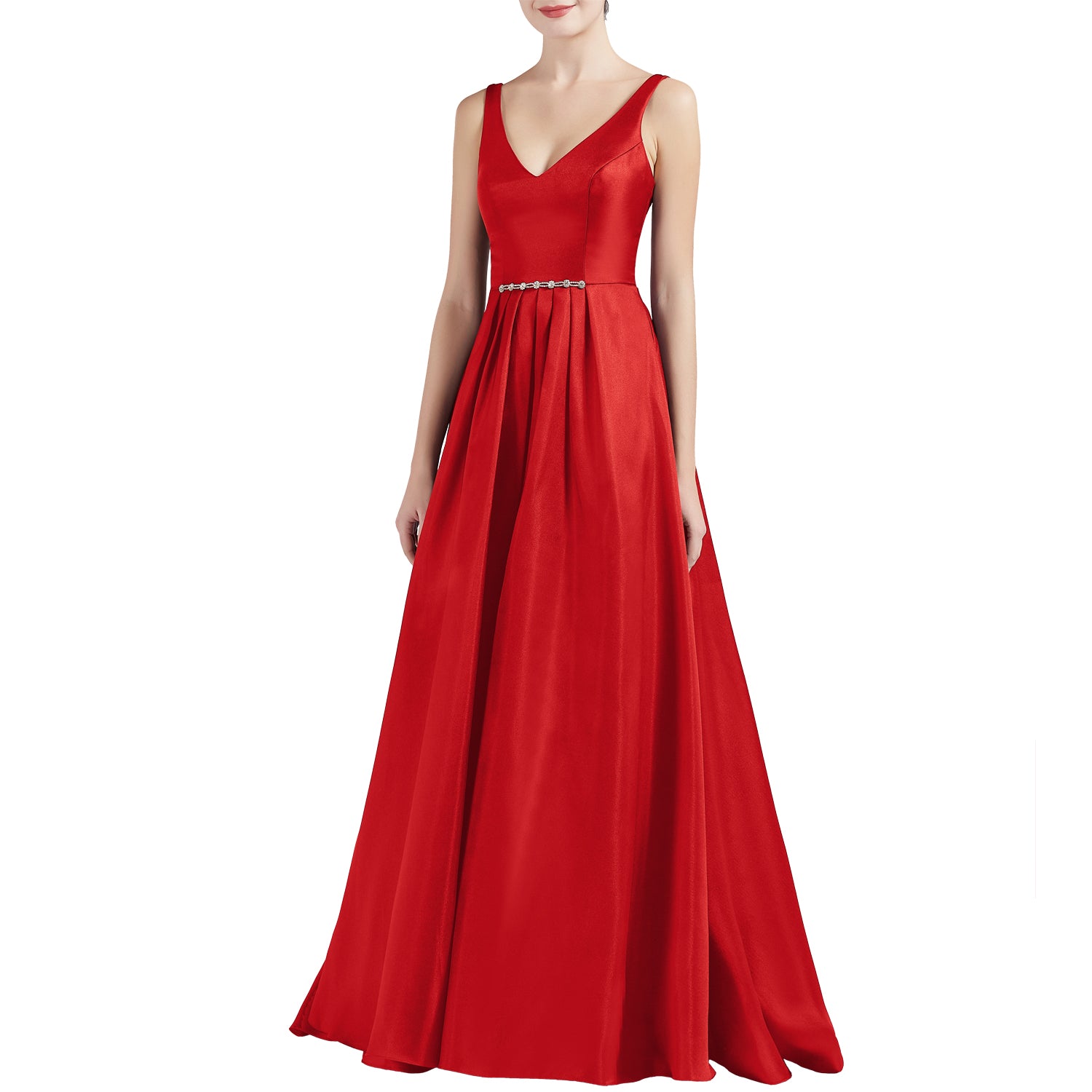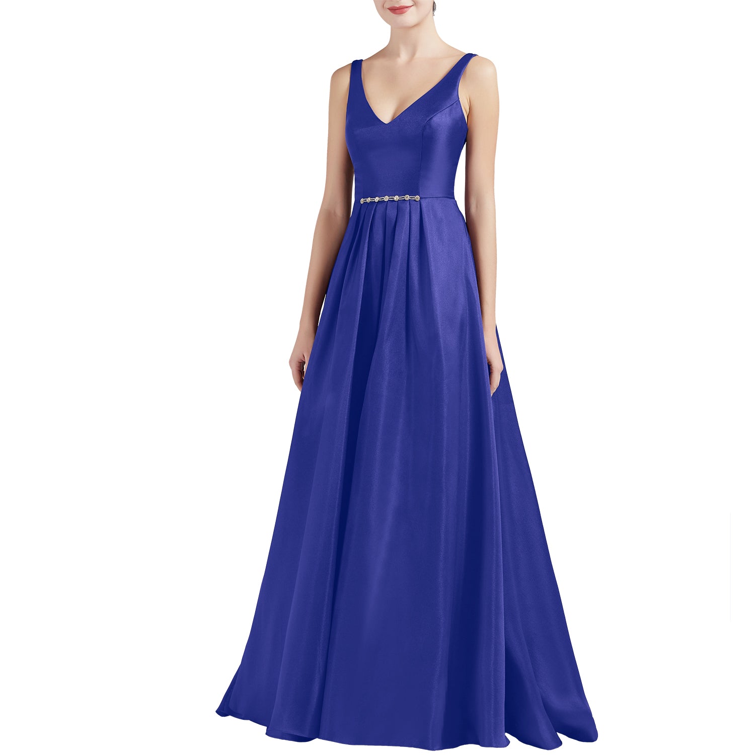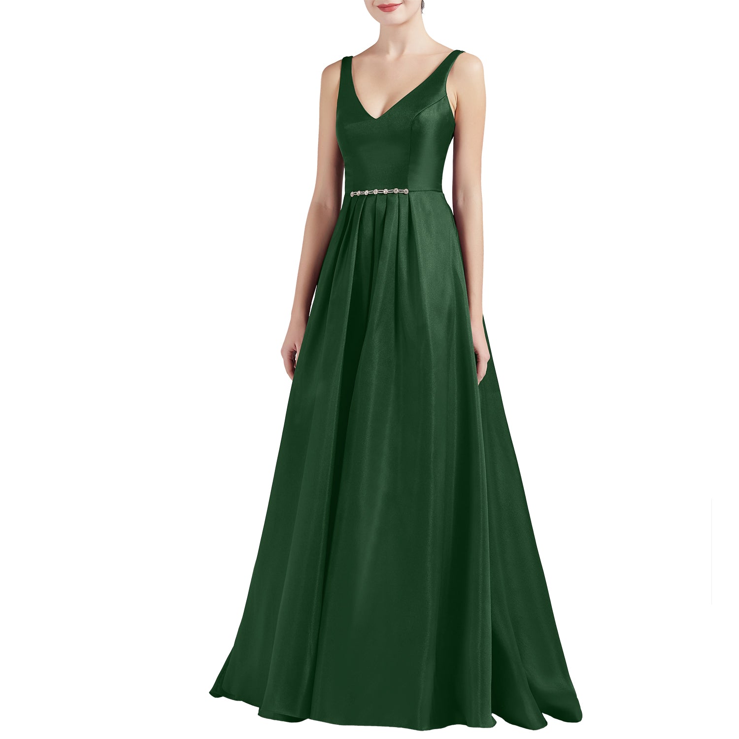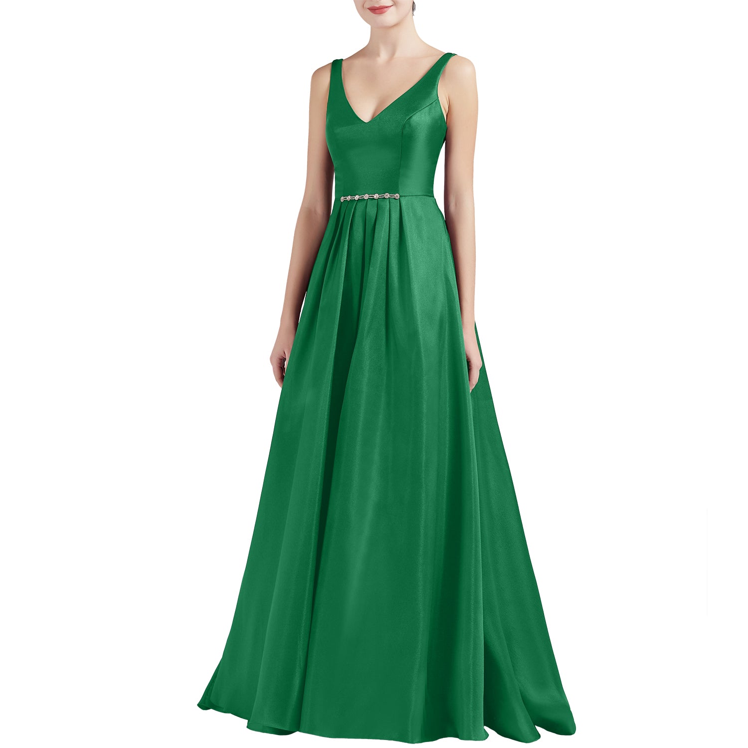 MACloth Mujeres A Línea V Cuello Largo Satén Vestidos de Fiesta de Graduación Vestido de Baile de Boda