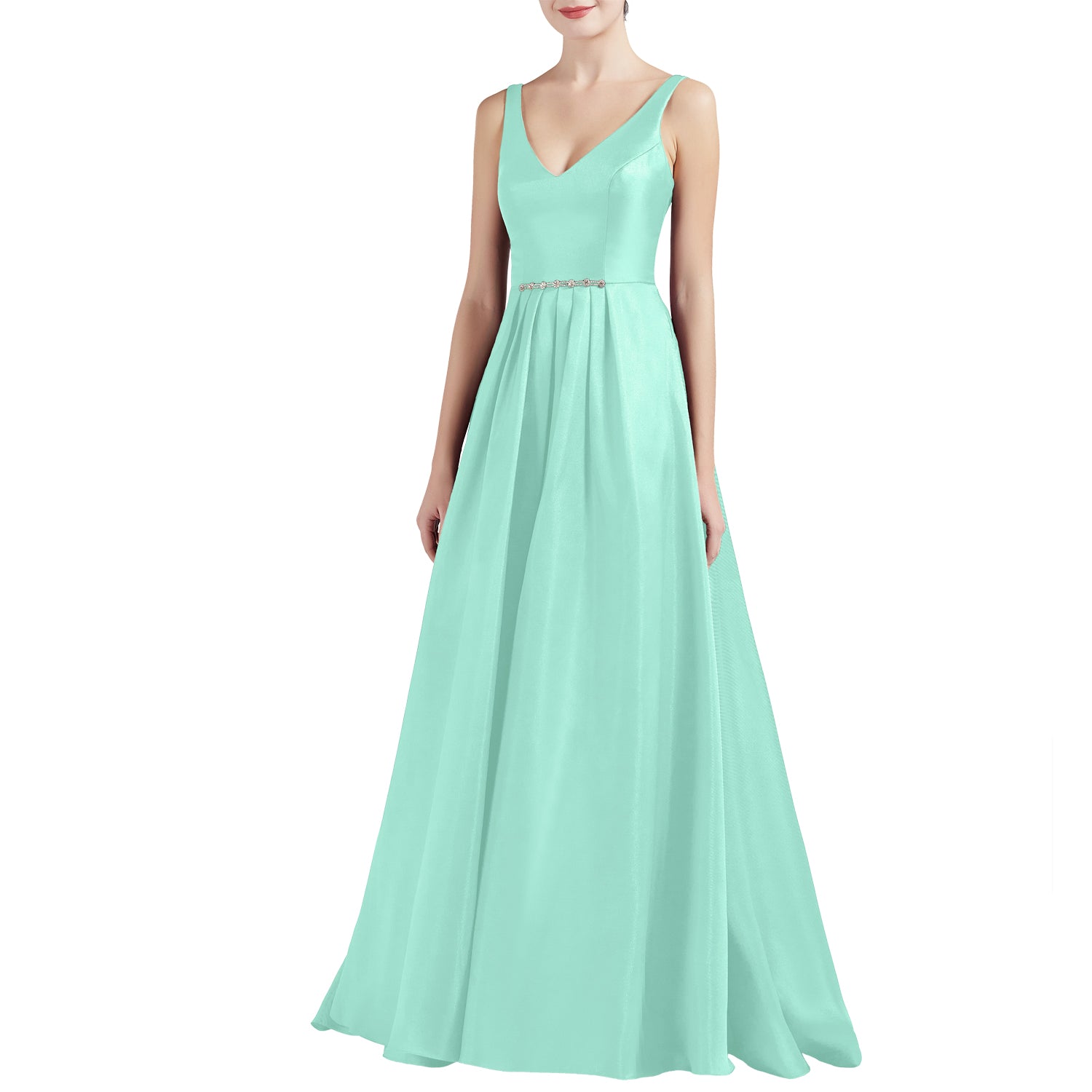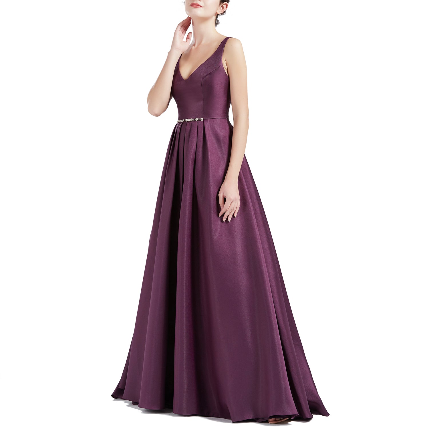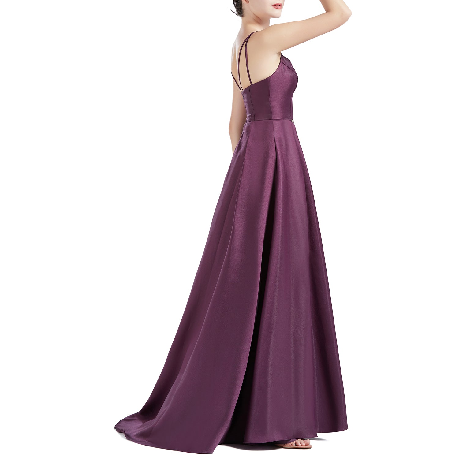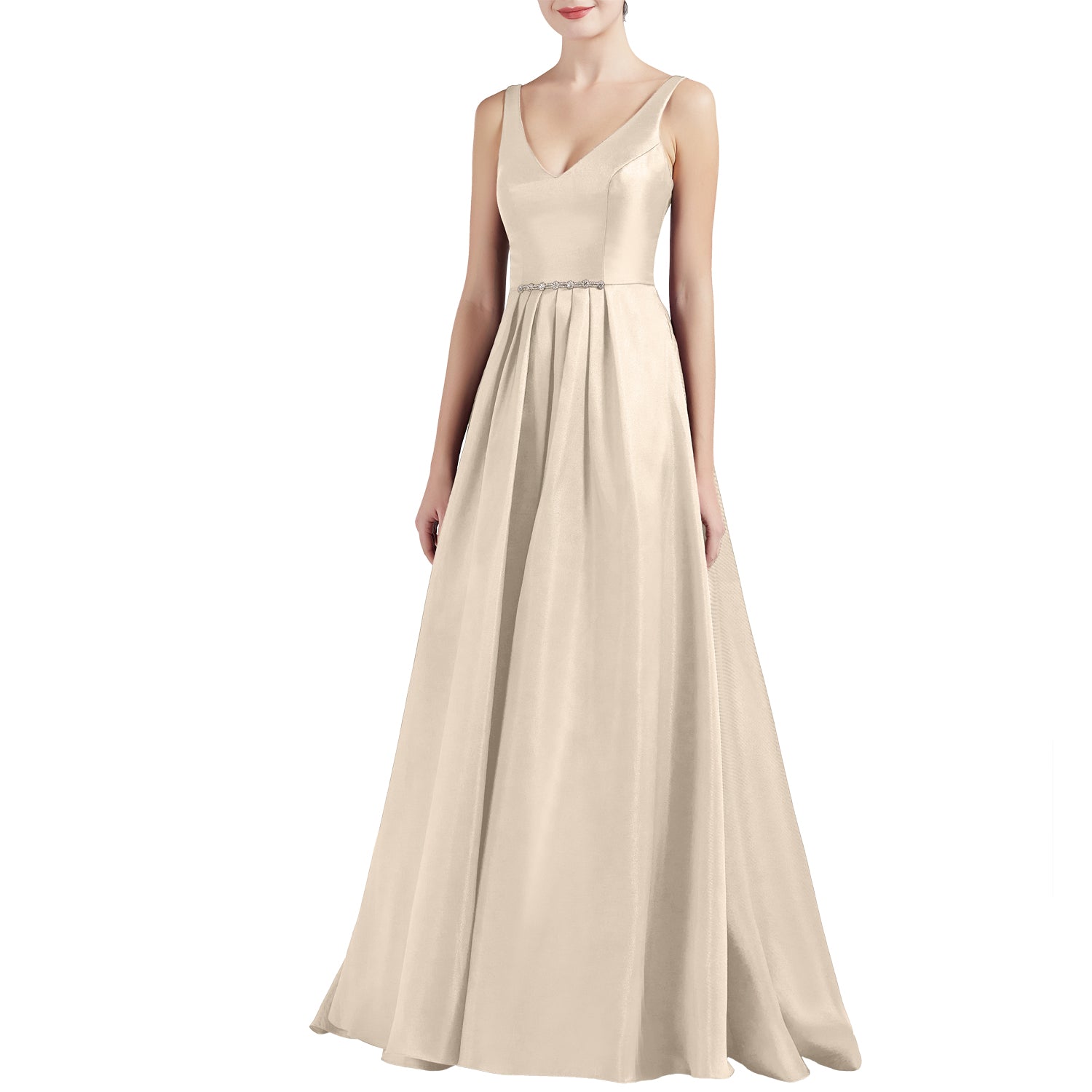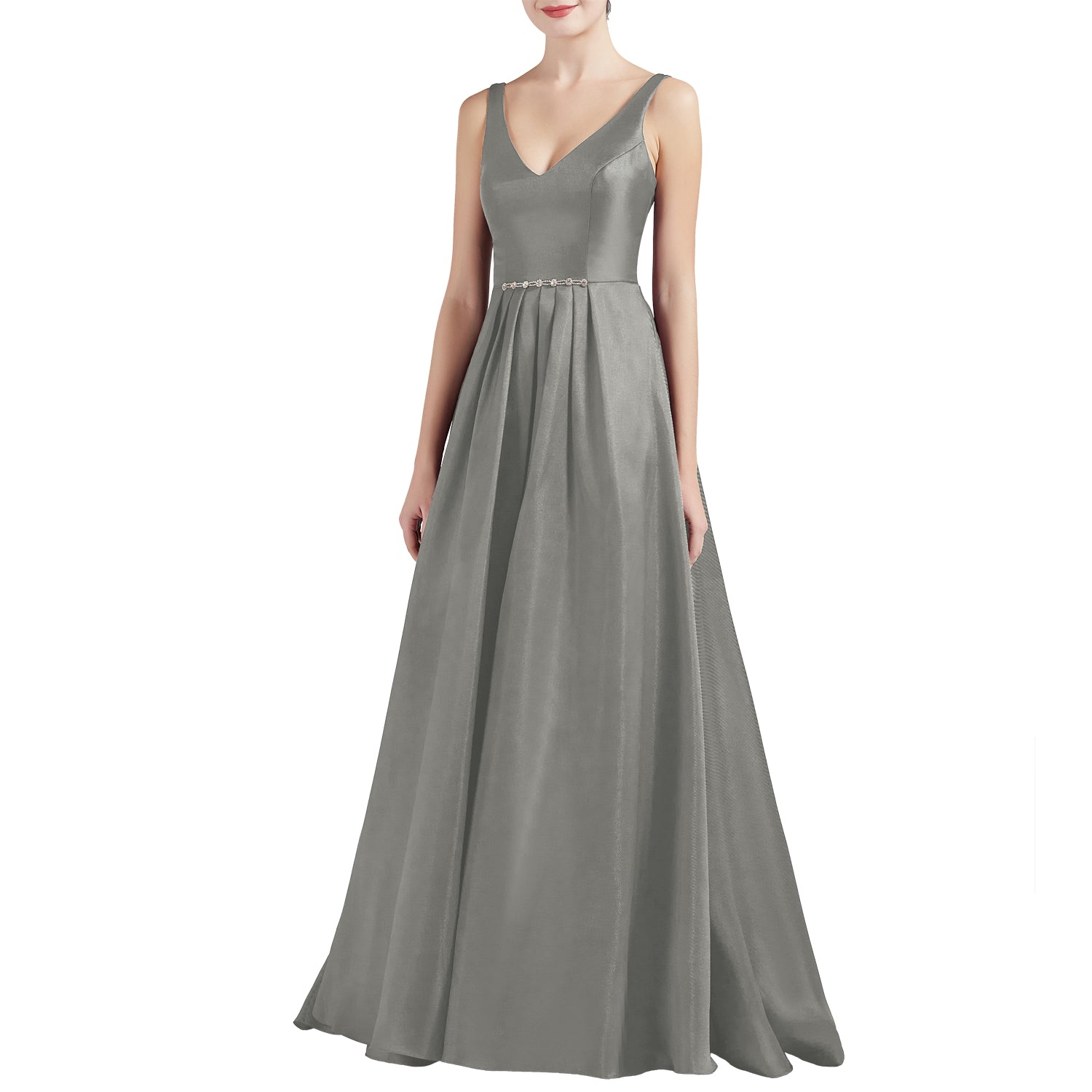 MACloth Mujeres A Línea V Cuello Largo Satén Vestidos de Fiesta de Graduación Vestido de Baile de Boda