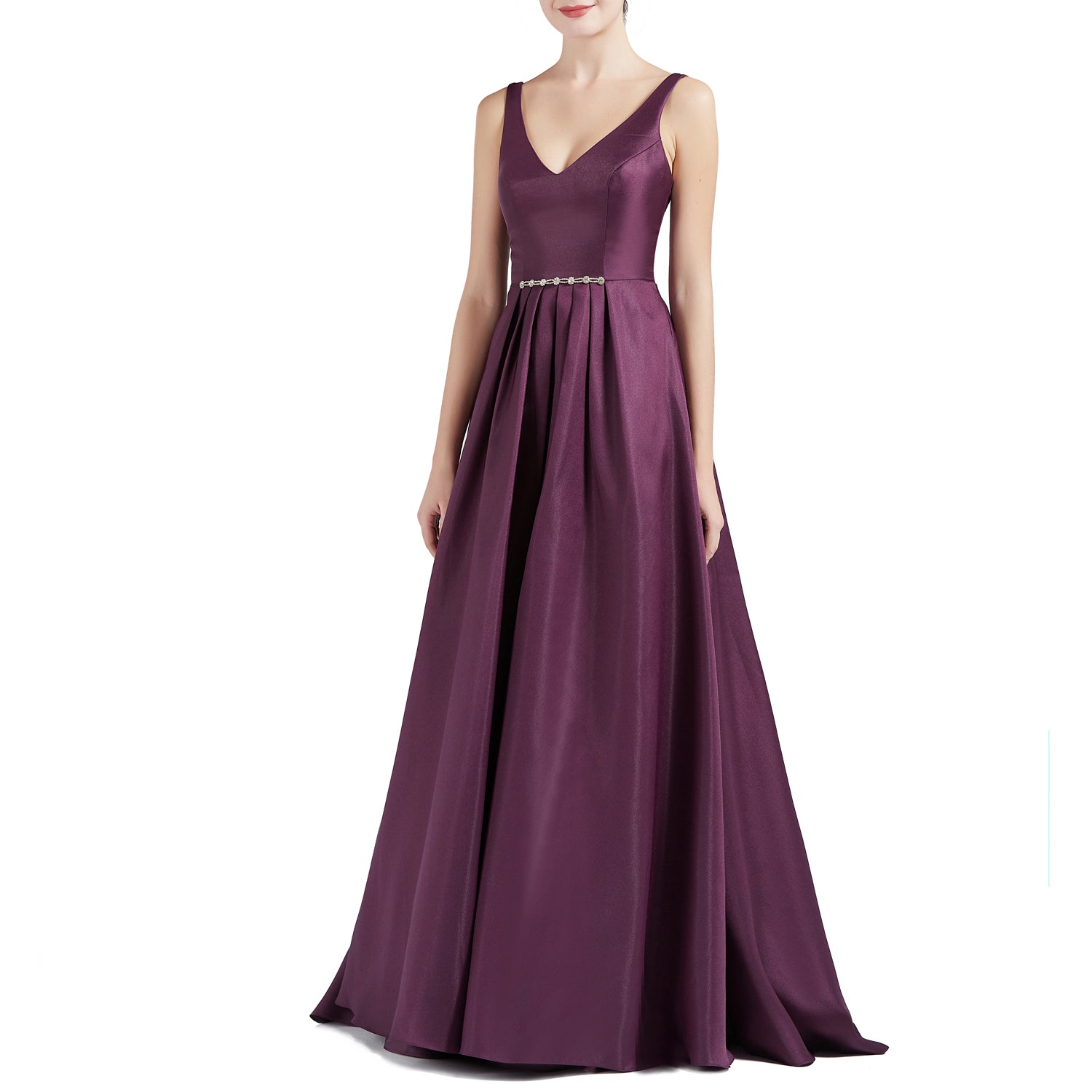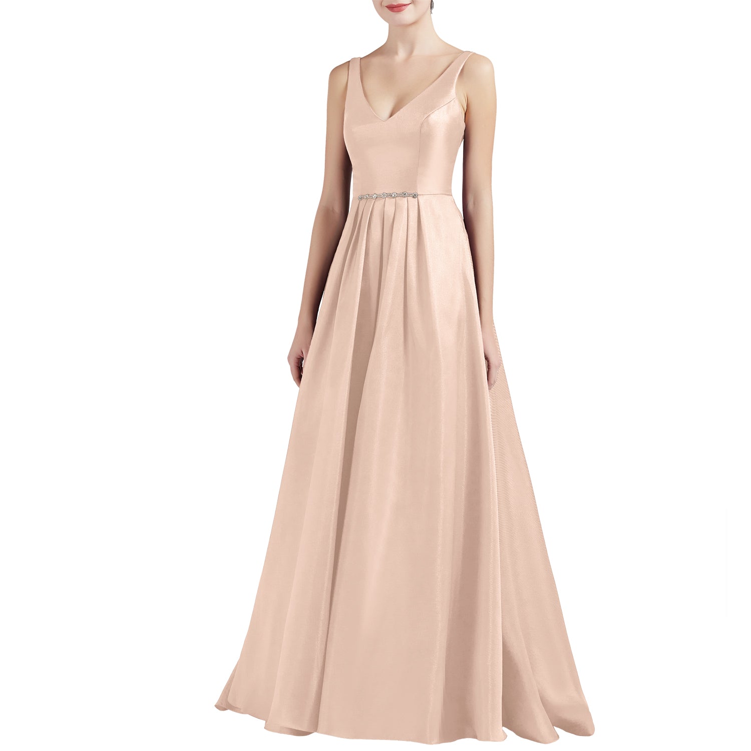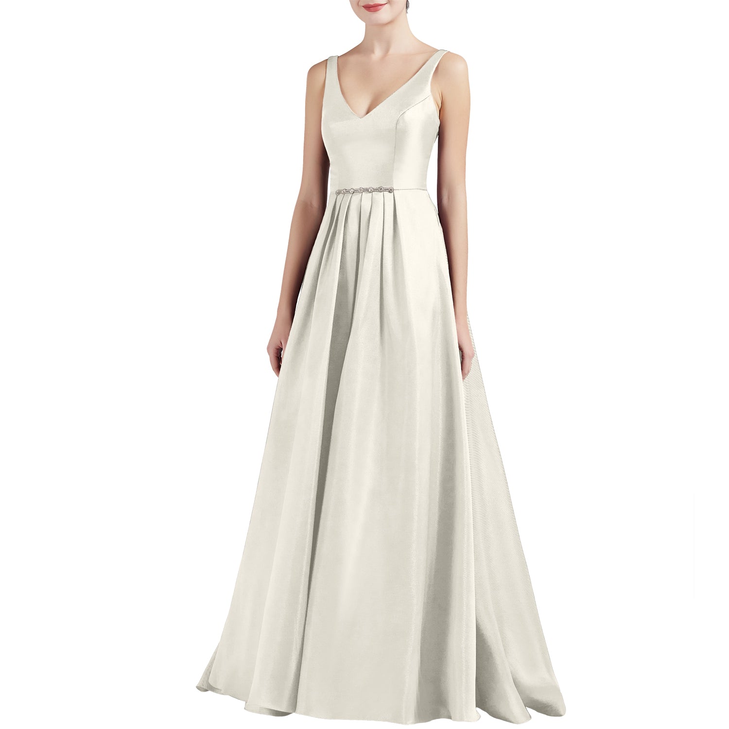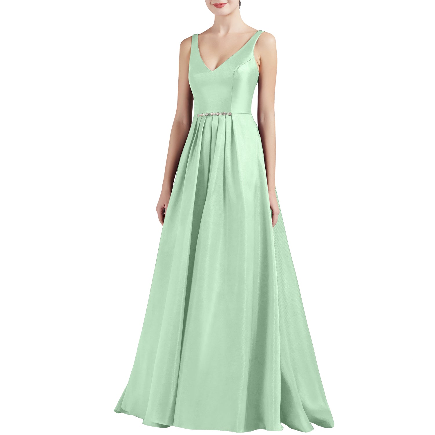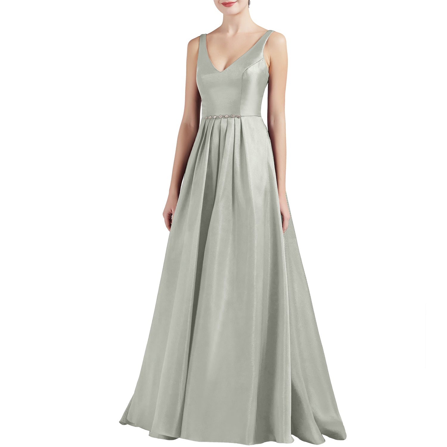 MACloth Mujeres A Línea V Cuello Largo Satén Vestidos de Fiesta de Graduación Vestido de Baile de Boda