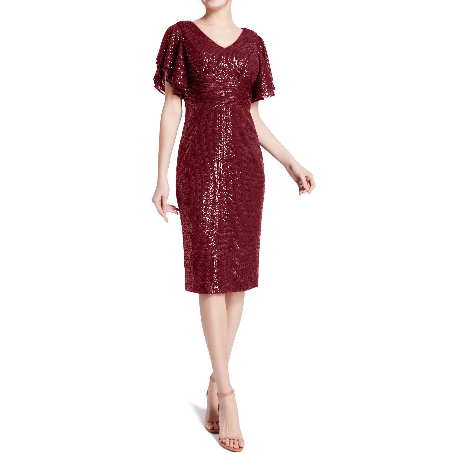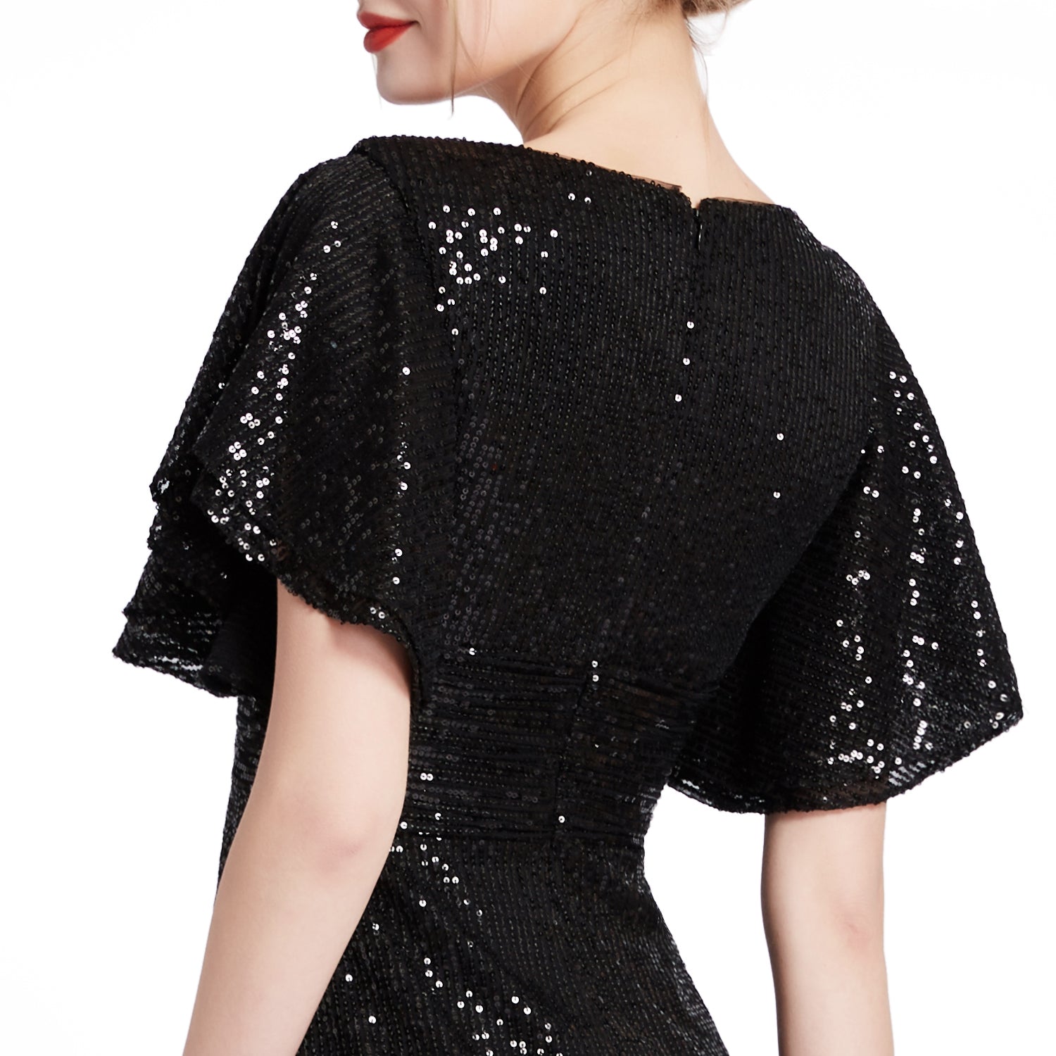 MACloth - Vestidos de cóctel de corte imperio con lentejuelas, escote en V, mangas de ángel con volantes y cortos para mujer