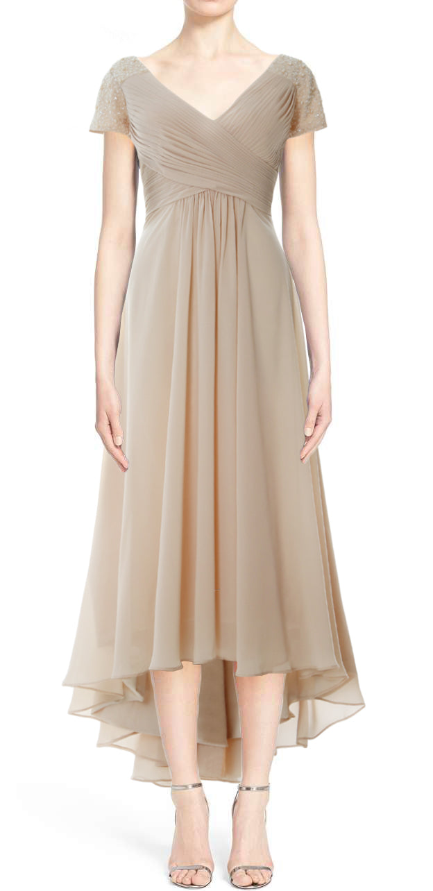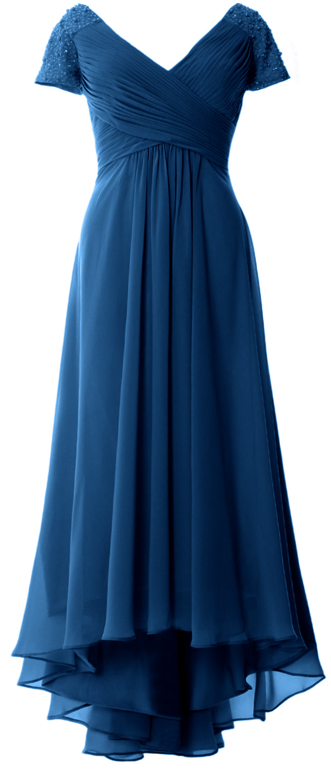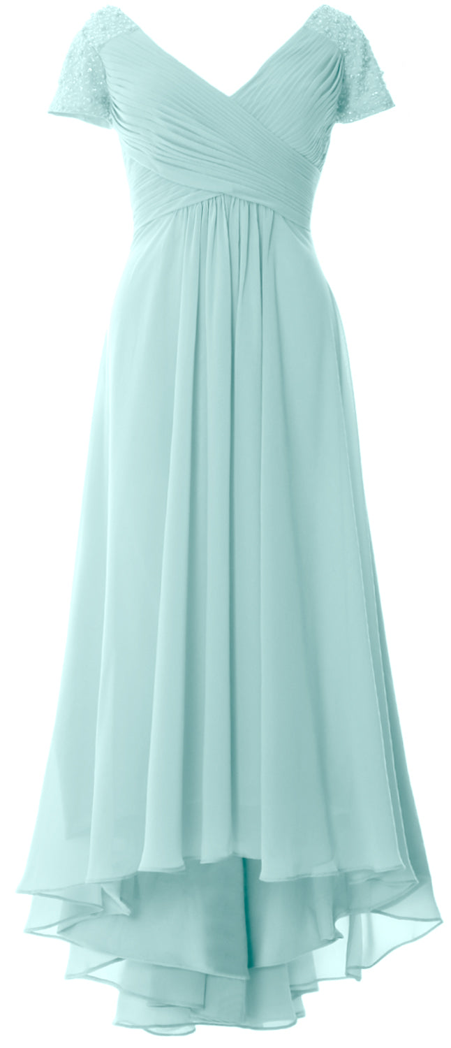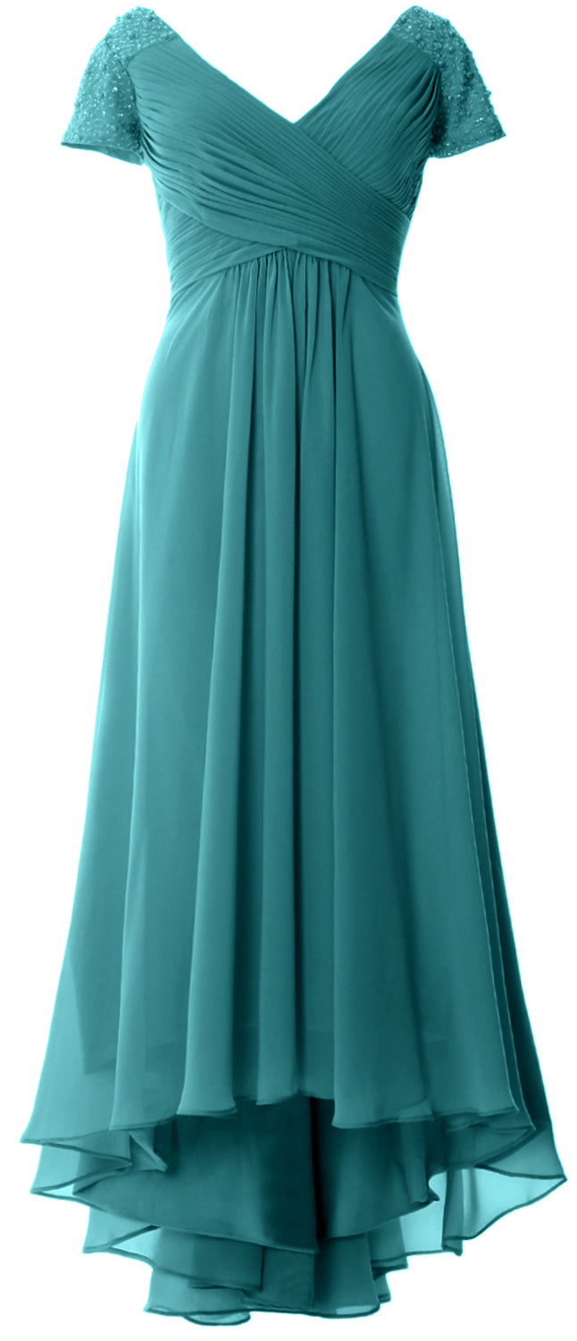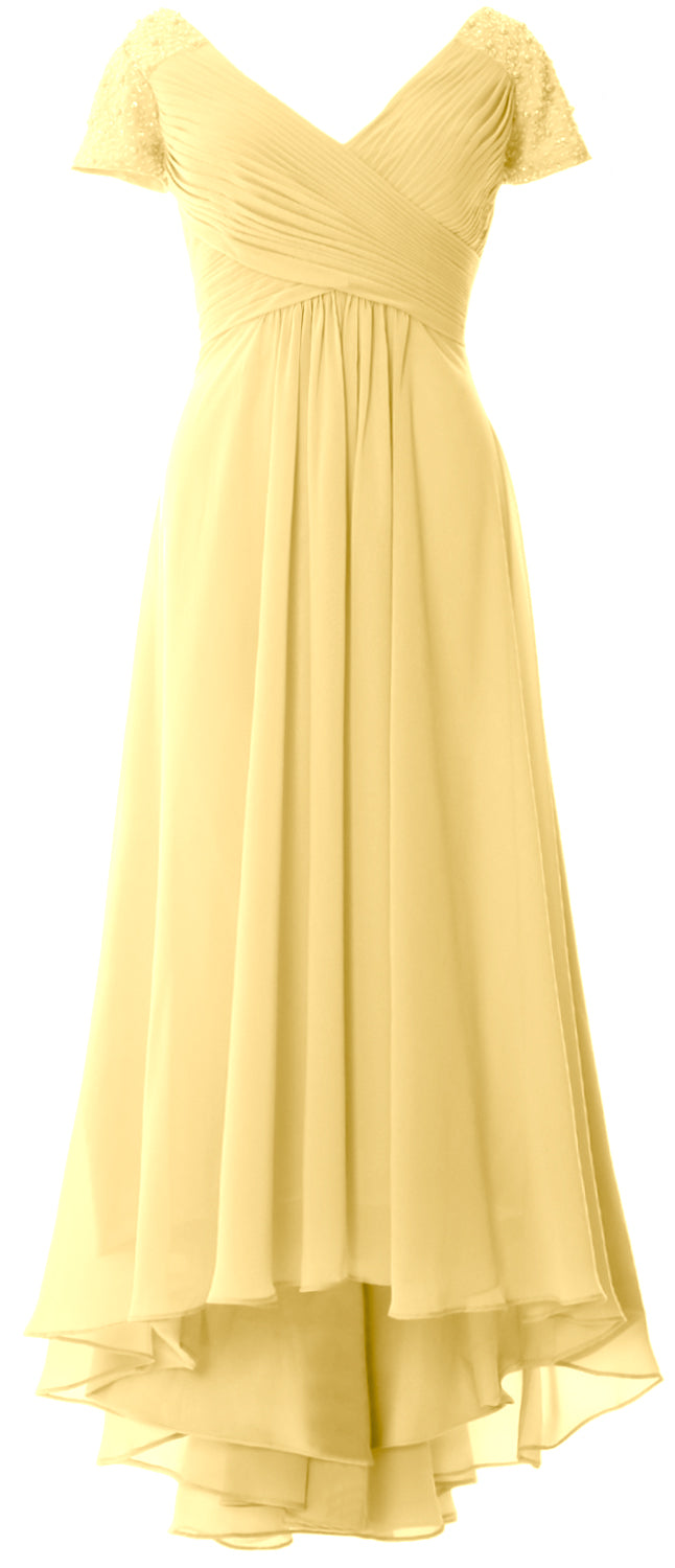 MACloth Mujeres Manga Corta Cuello En V Hi Lo Madre De La Novia Vestidos De Novio Vestido De Noche