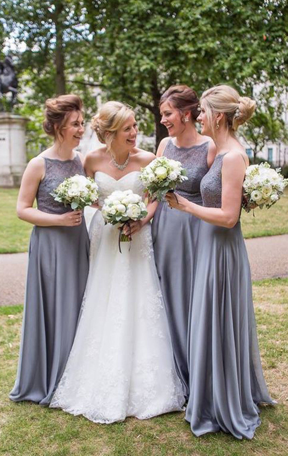 Vestido largo de gasa con encaje y cuello halter de MACloth para dama de honor, vestido formal vintage gris para fiesta de boda