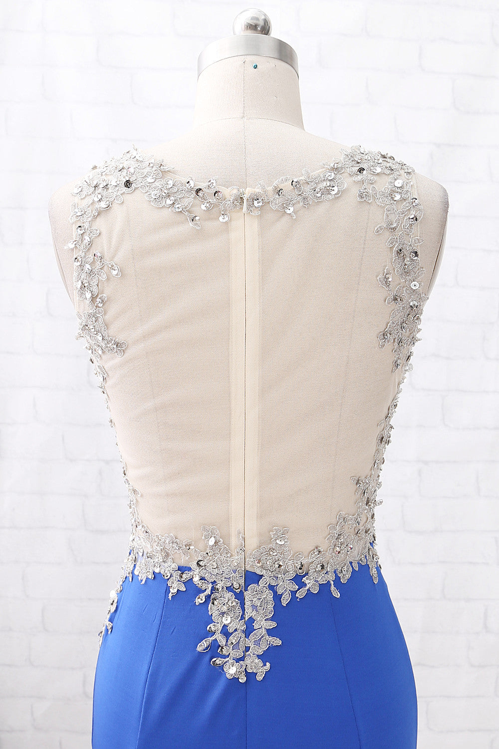Vestido de fiesta largo de jersey de encaje con ilusión de sirena MACloth en azul real, vestido de noche formal