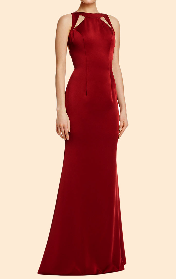 Vestido de fiesta largo de satén con escote redondo en color burdeos de MACloth