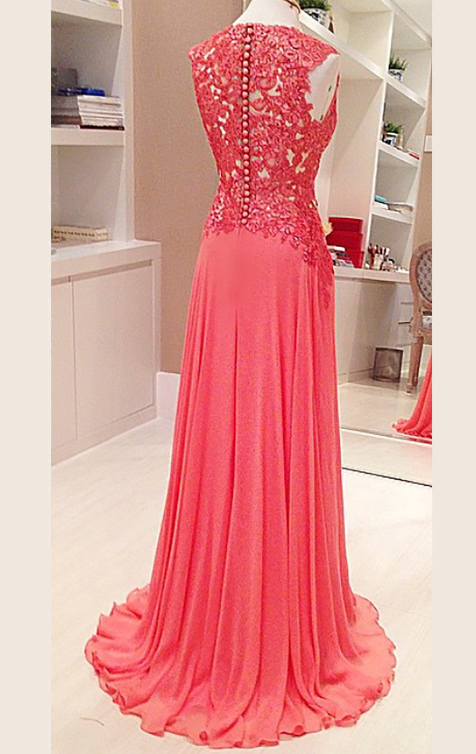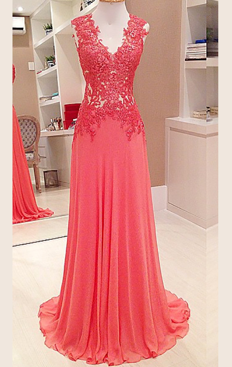 Vestido de fiesta formal largo de gasa con escote en V y tirantes de MACloth