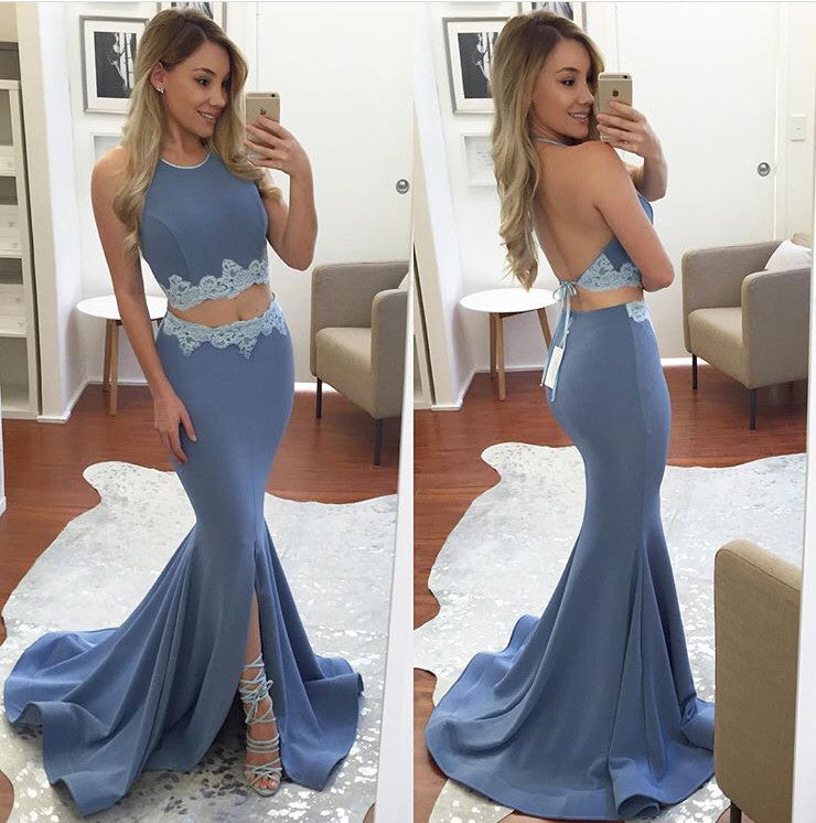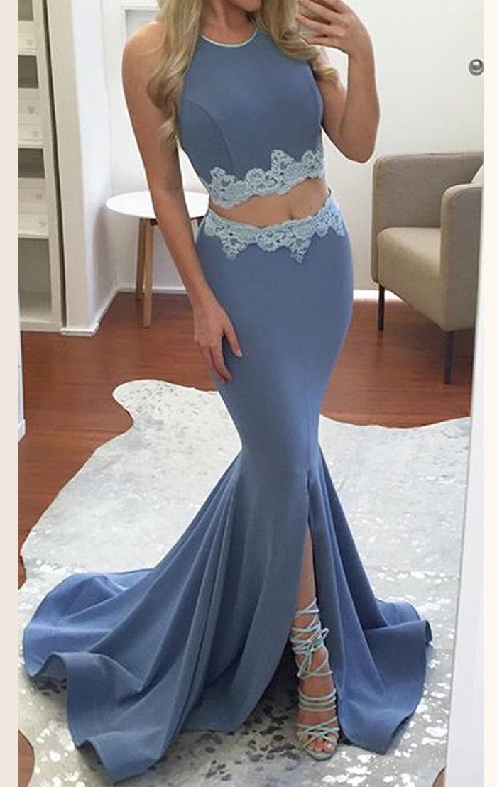 Vestido de fiesta de dos piezas de jersey de sirena de MACloth, vestido de noche formal rosa