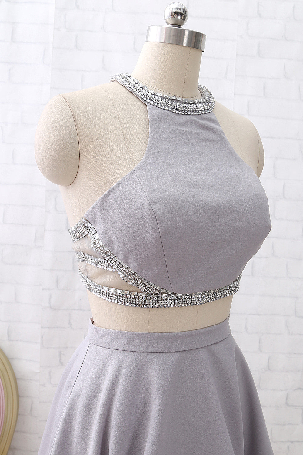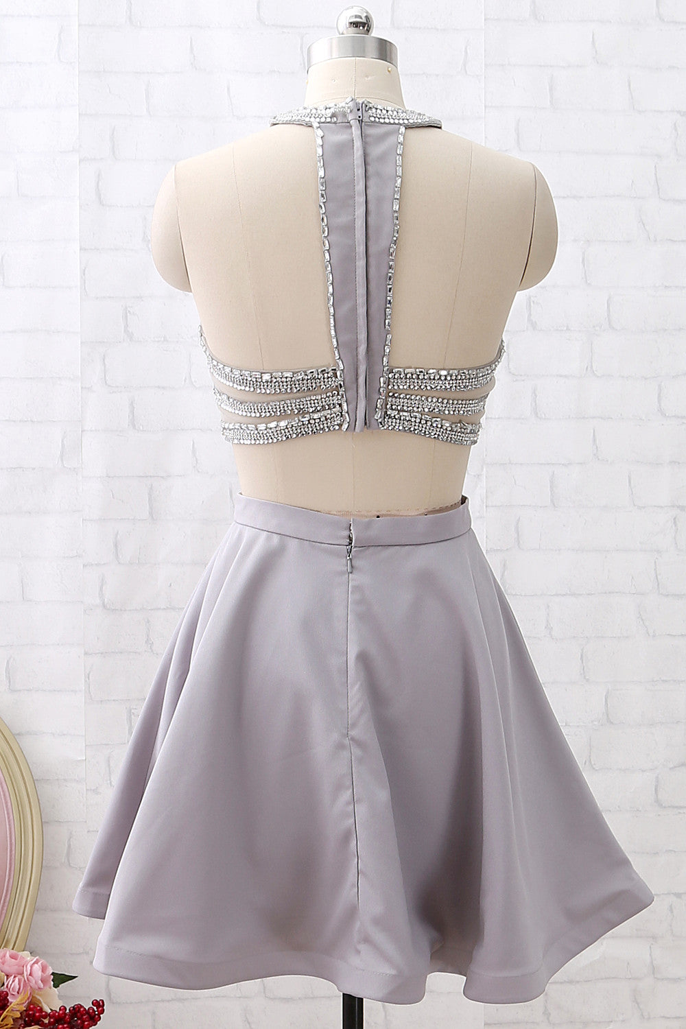 Vestido mini plateado de dos piezas de MACloth para fiesta de graduación, regreso a casa, vestido para fiesta de boda