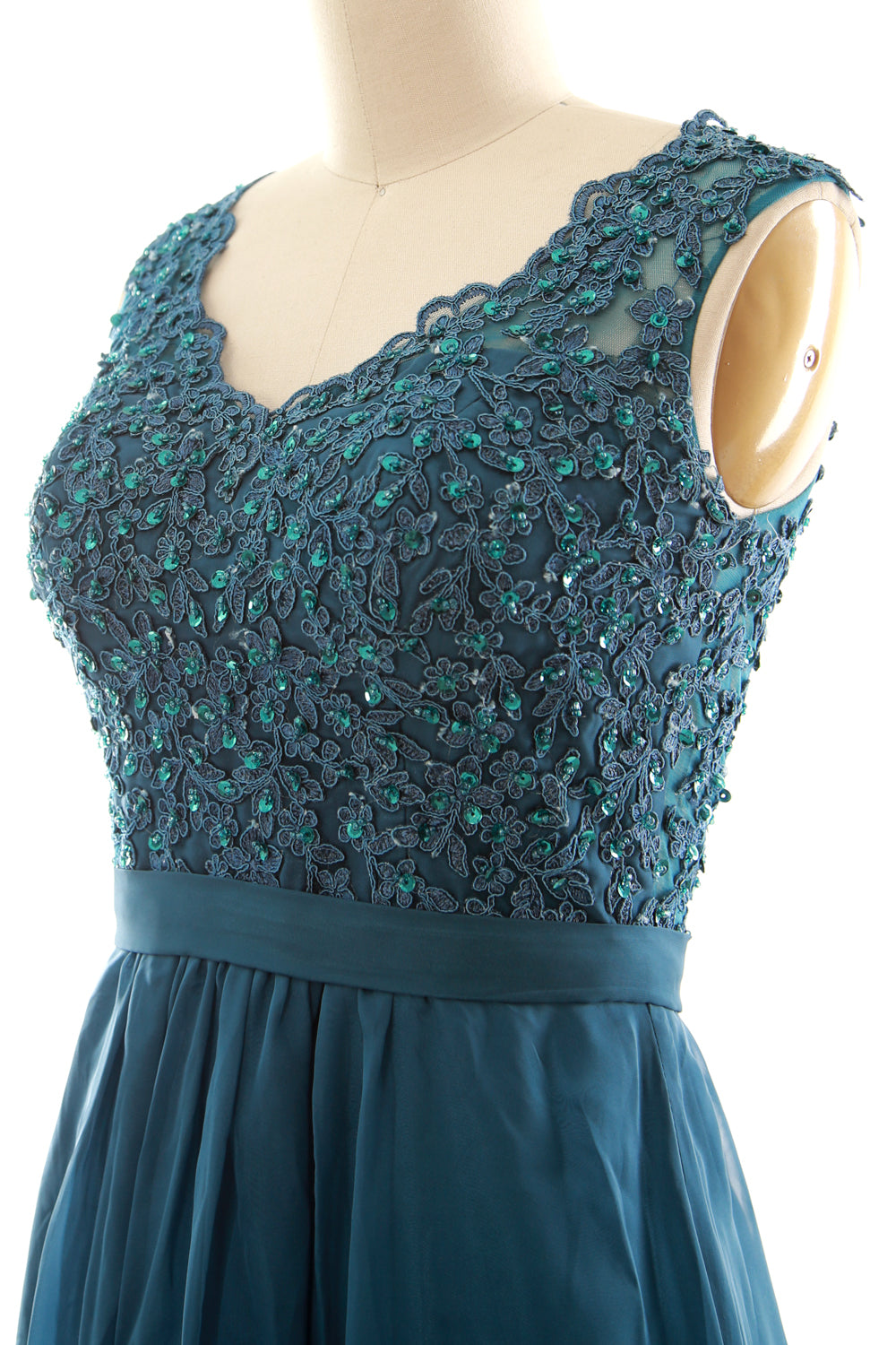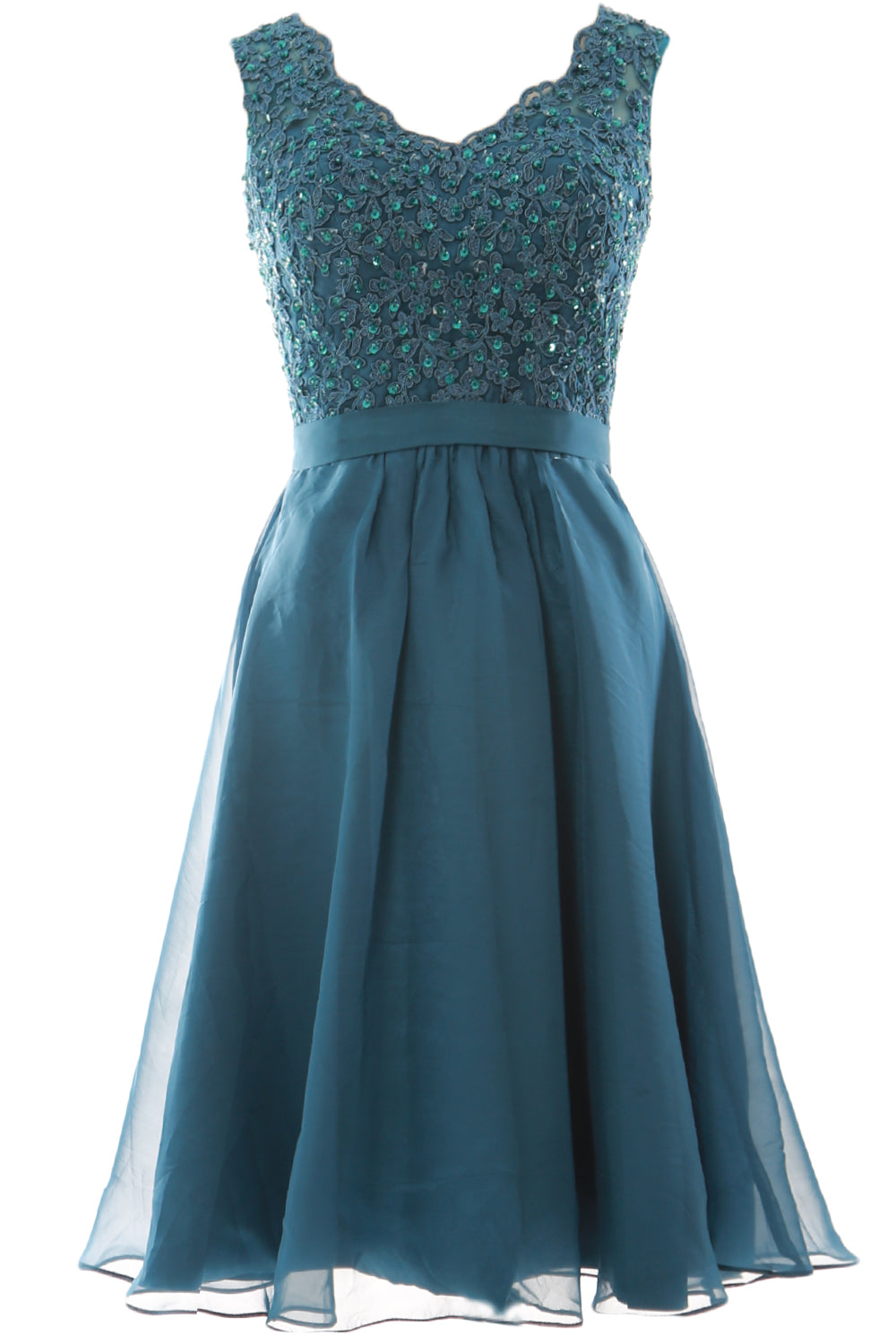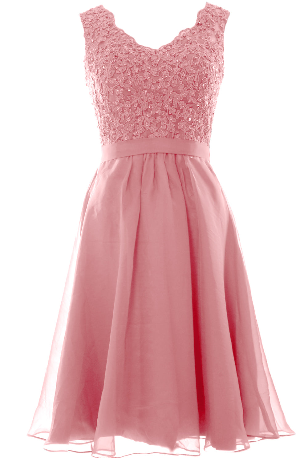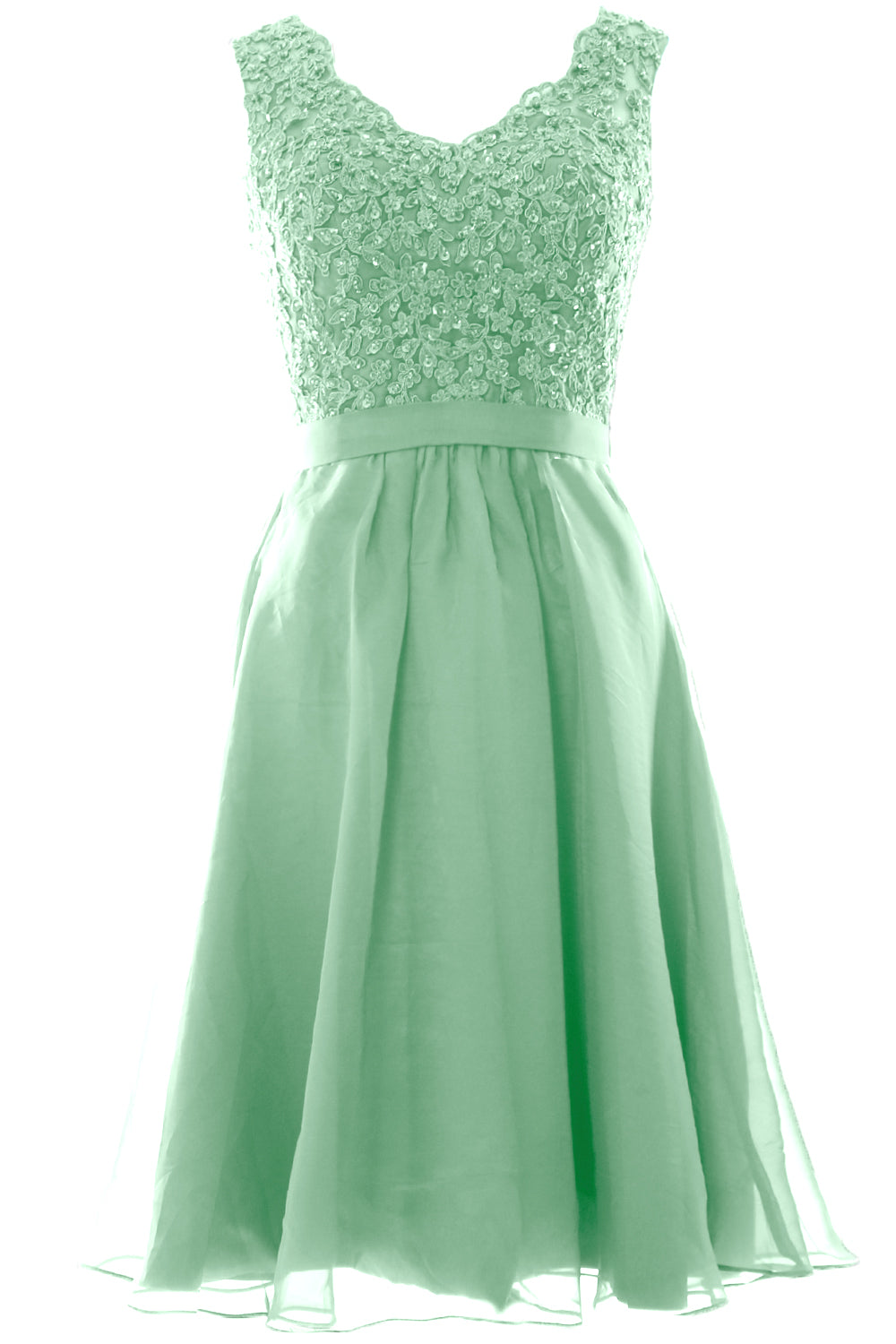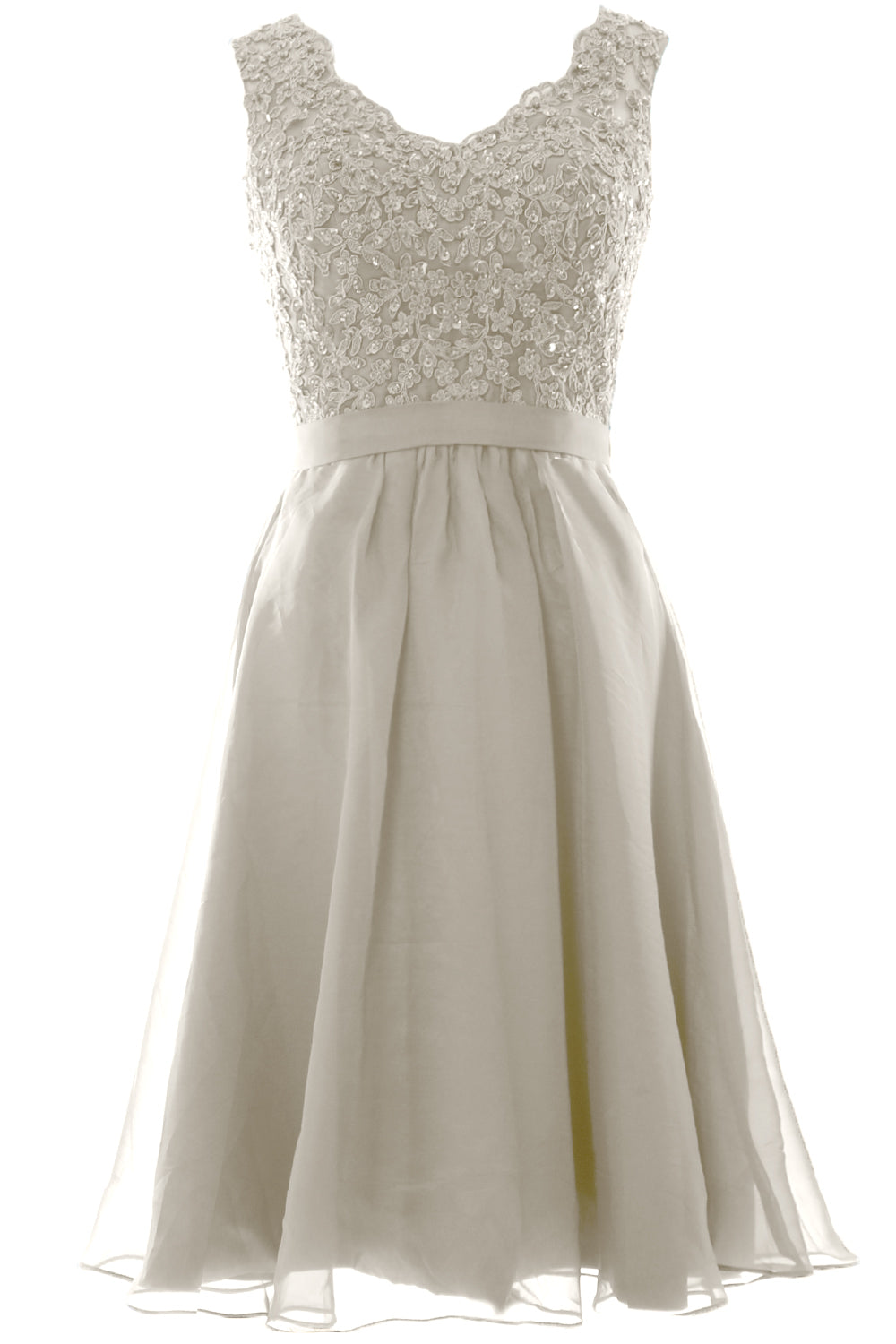 MACloth Mujeres Cuello en V Vintage Encaje Gasa Vestidos Cortos de Fiesta Vestido de Fiesta de Boda