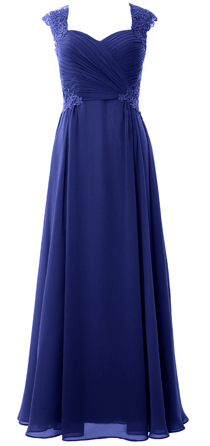 MACloth Women Long Maxi Bridesmaid Dresses Cap Sleeve Lace Evening Gown