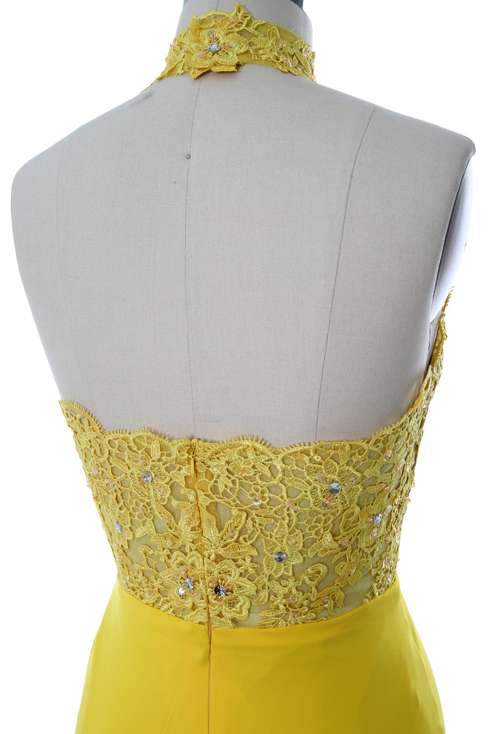The gown is a halter style gown with open back and lace, opening backing The beautiful gown is a beautiful lace gown and jersey gown.