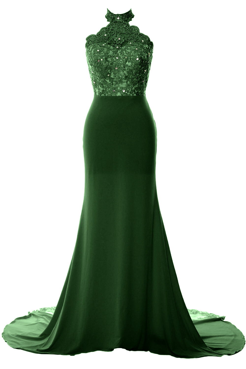 MACloth Women Prom Dresses Mermaid Sleeveless Lace Evening Party Formal Gown