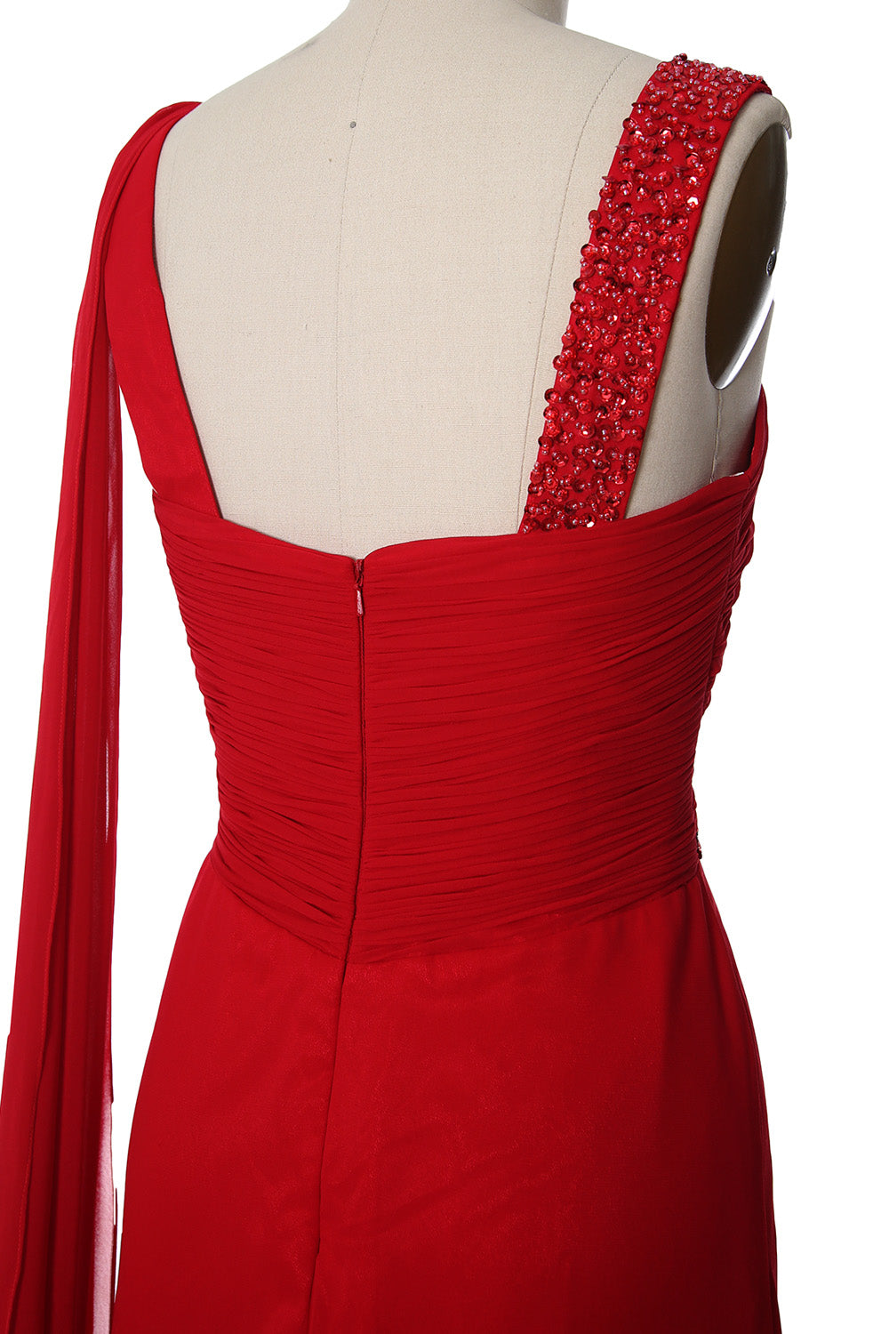 Gentle ruching formed the sweetheart bodice with beaded straps Chiffon luxuriously flows out to give the A-line skirt a gorgeous finish