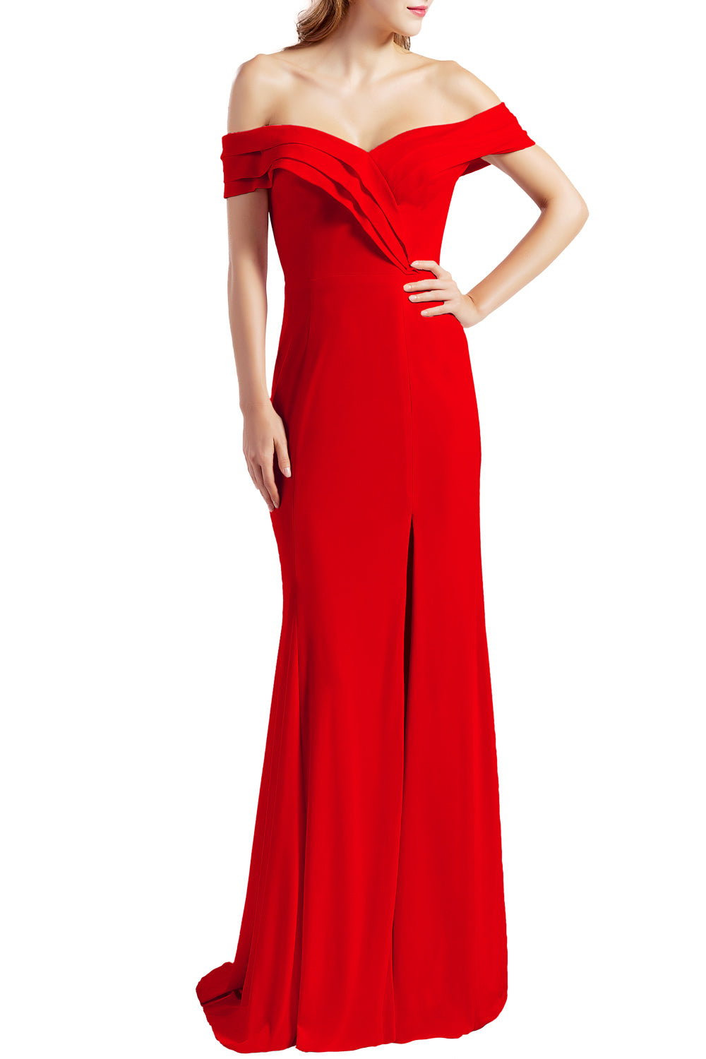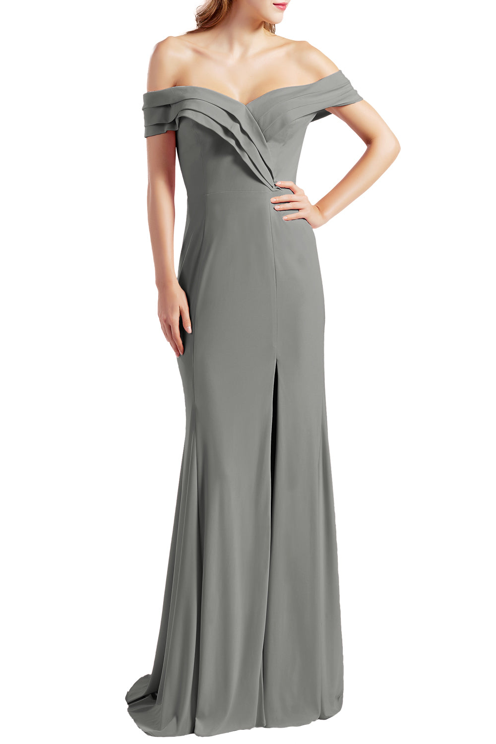 MACloth Women Prom Dresses with Side Split Off the Shoulder Formal Evening Gown