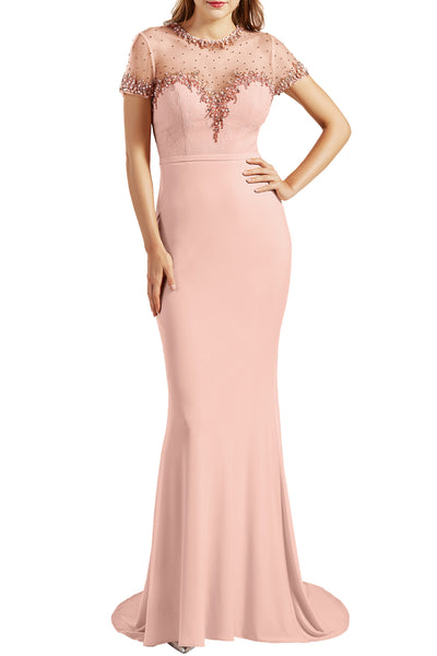 MACloth Women Short Sleeves Mermaid Prom Dresses Jersey Formal Evening Gowns