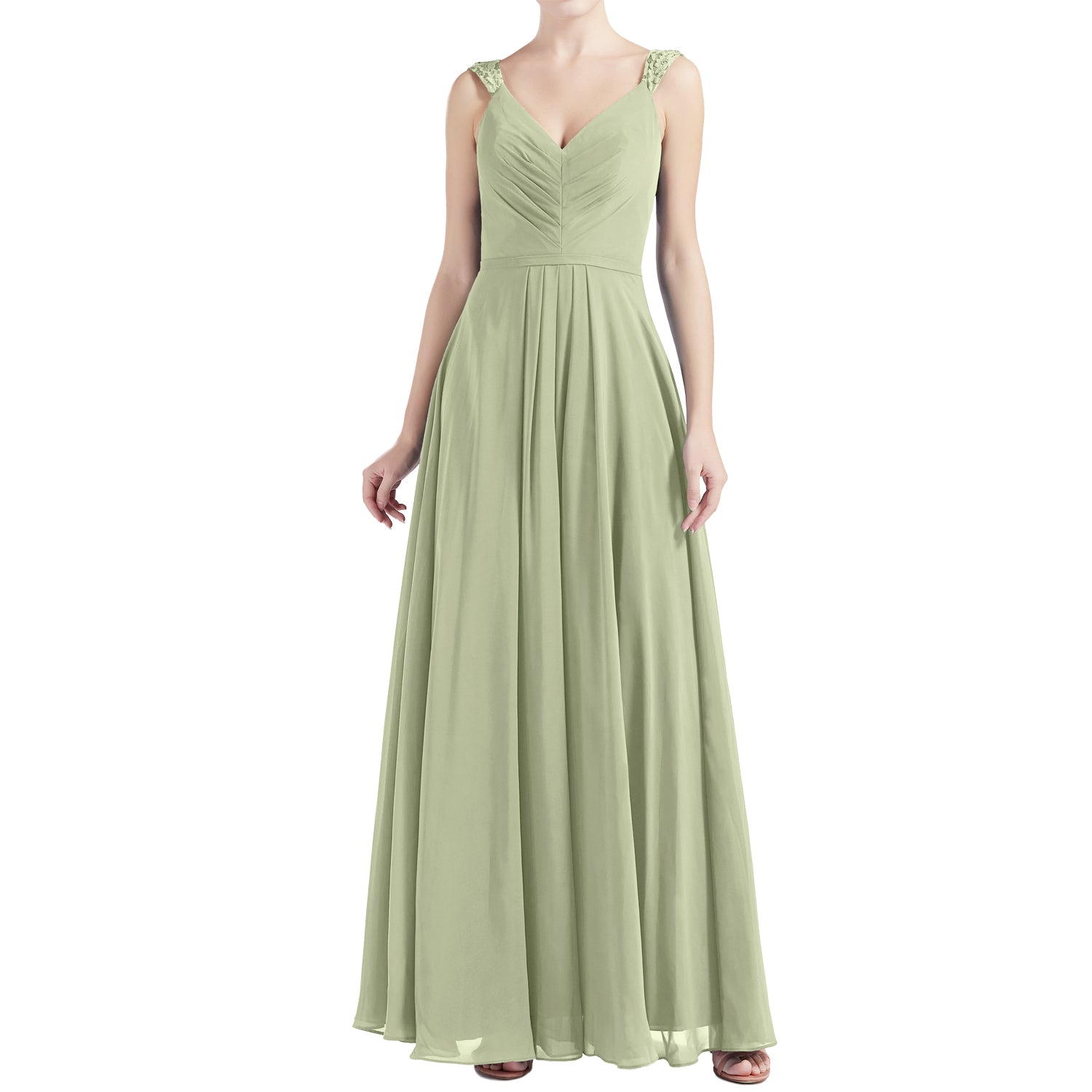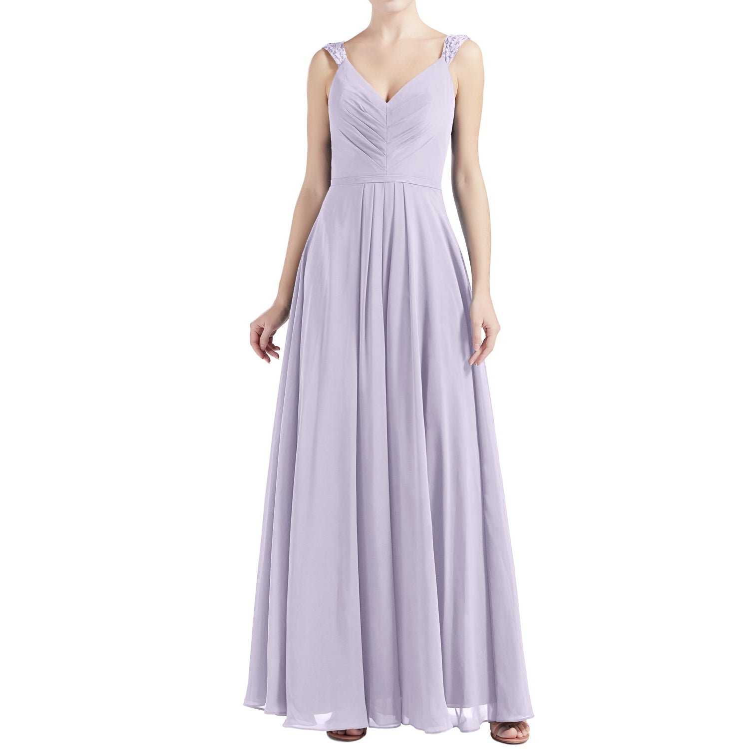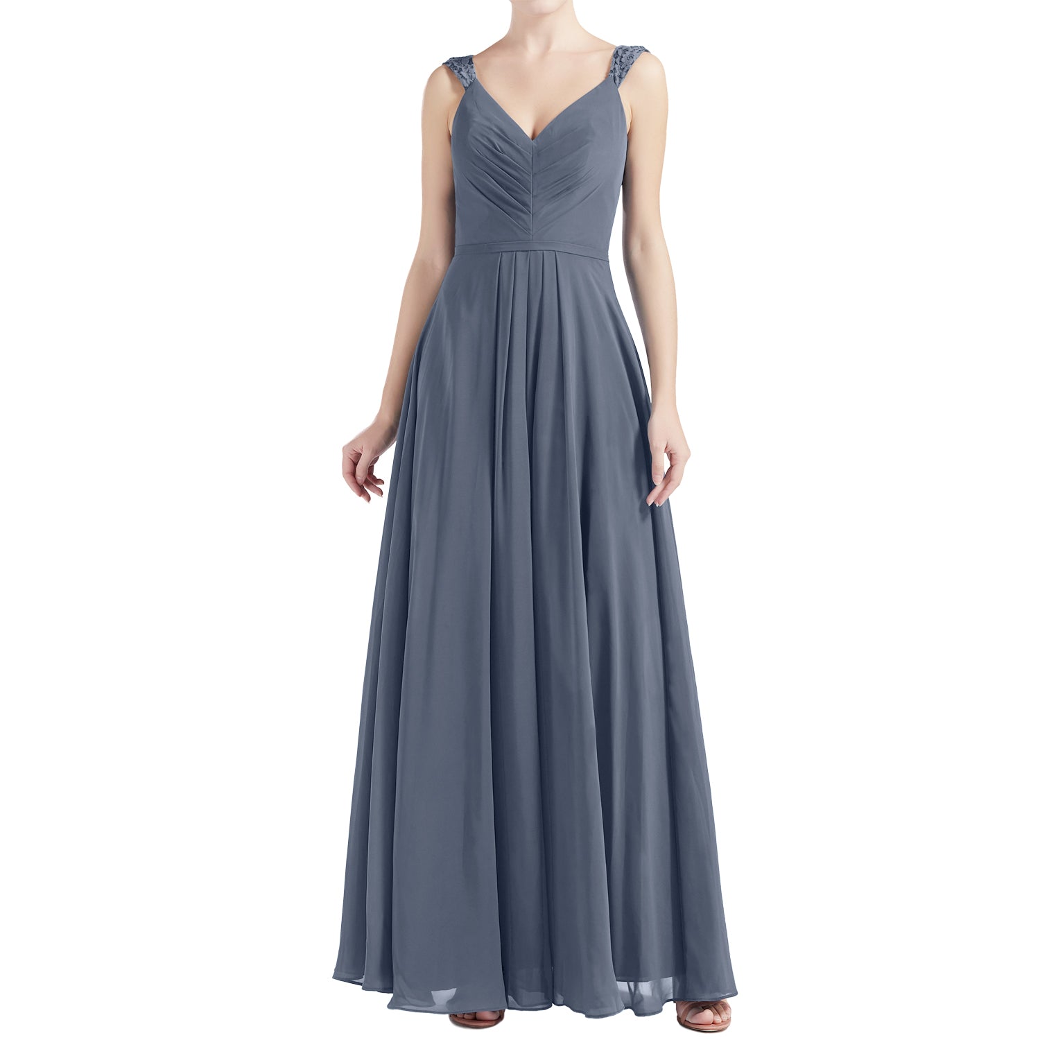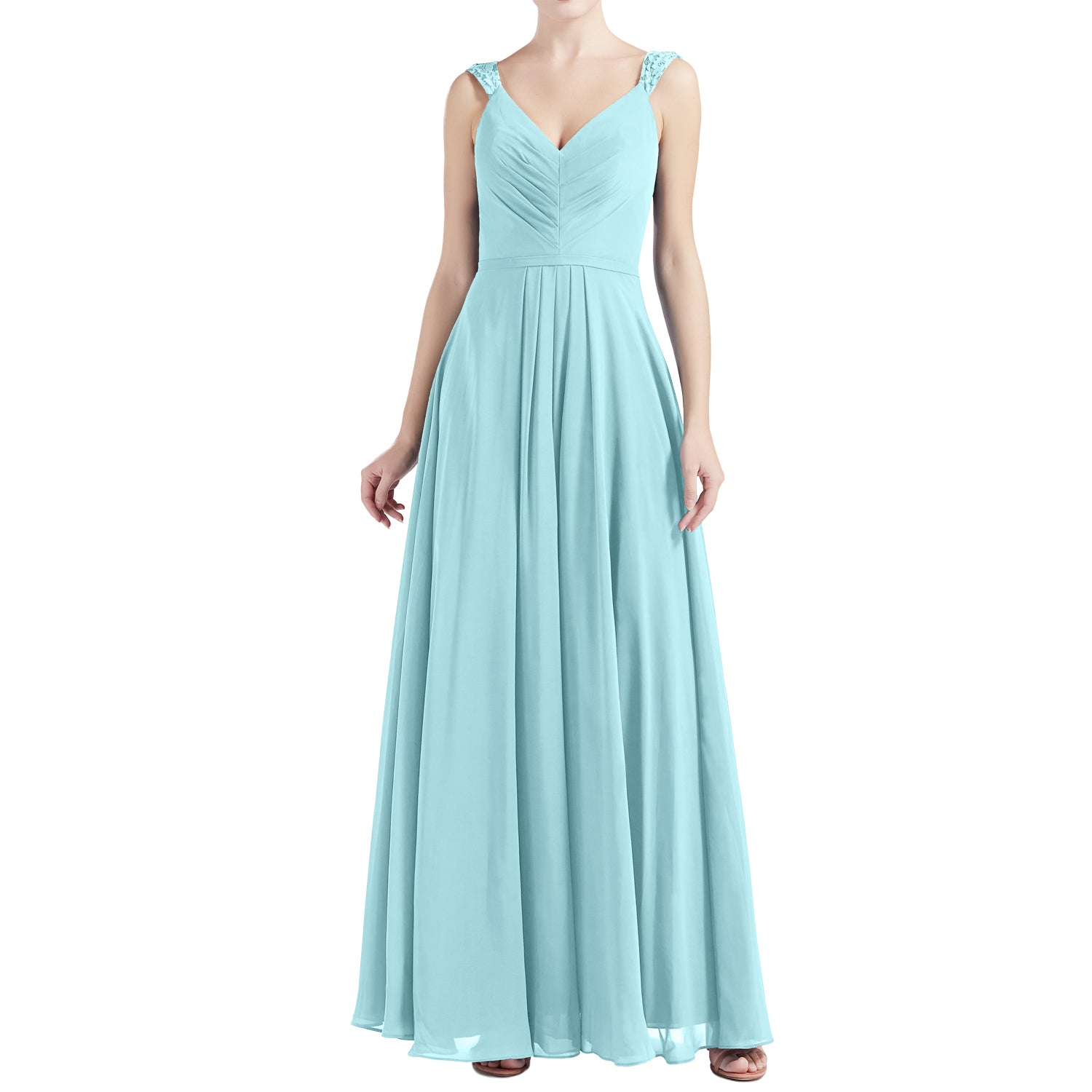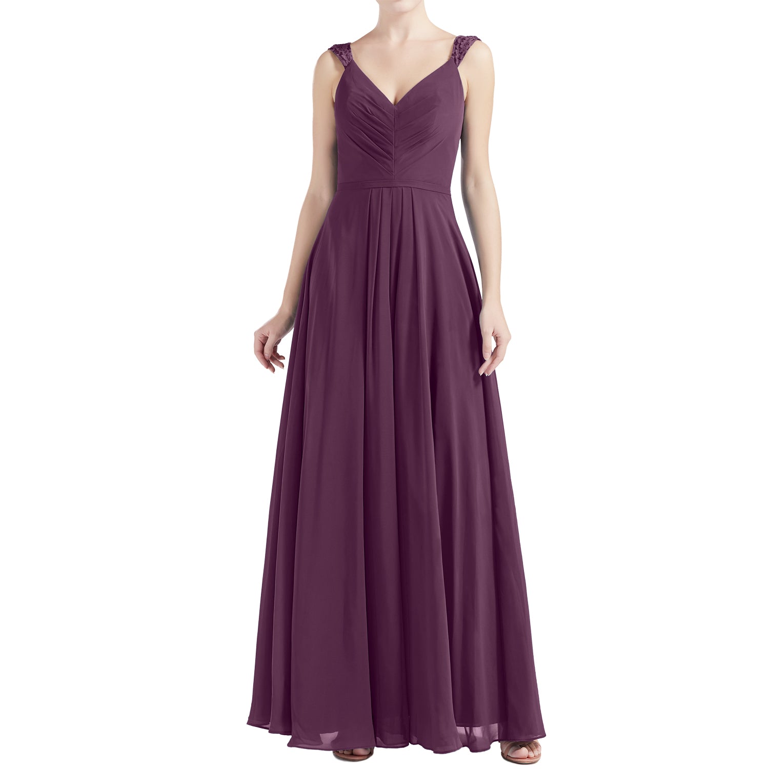 MACloth Women V Neck Lace Chiffon A Line Maxi Wedding Party Bridesmaid Dresses