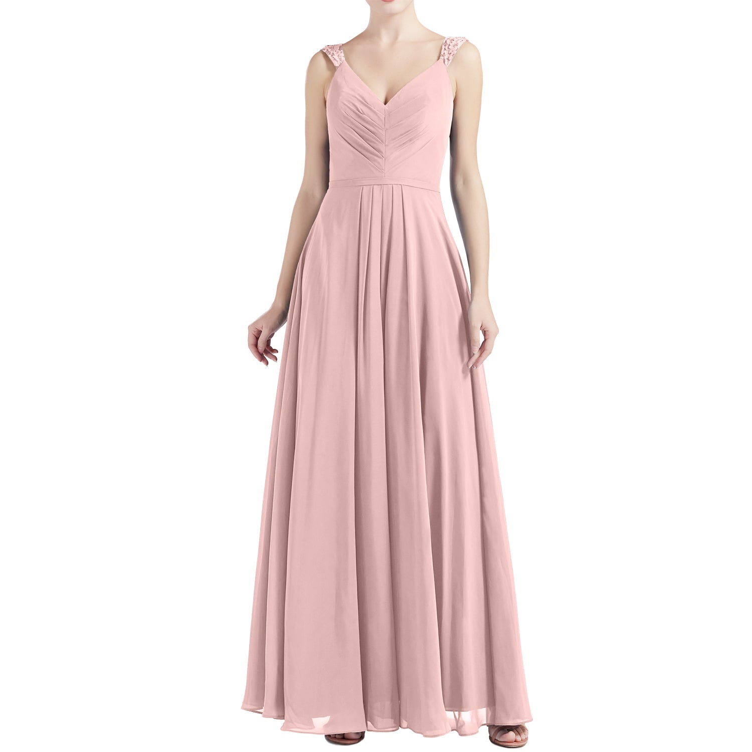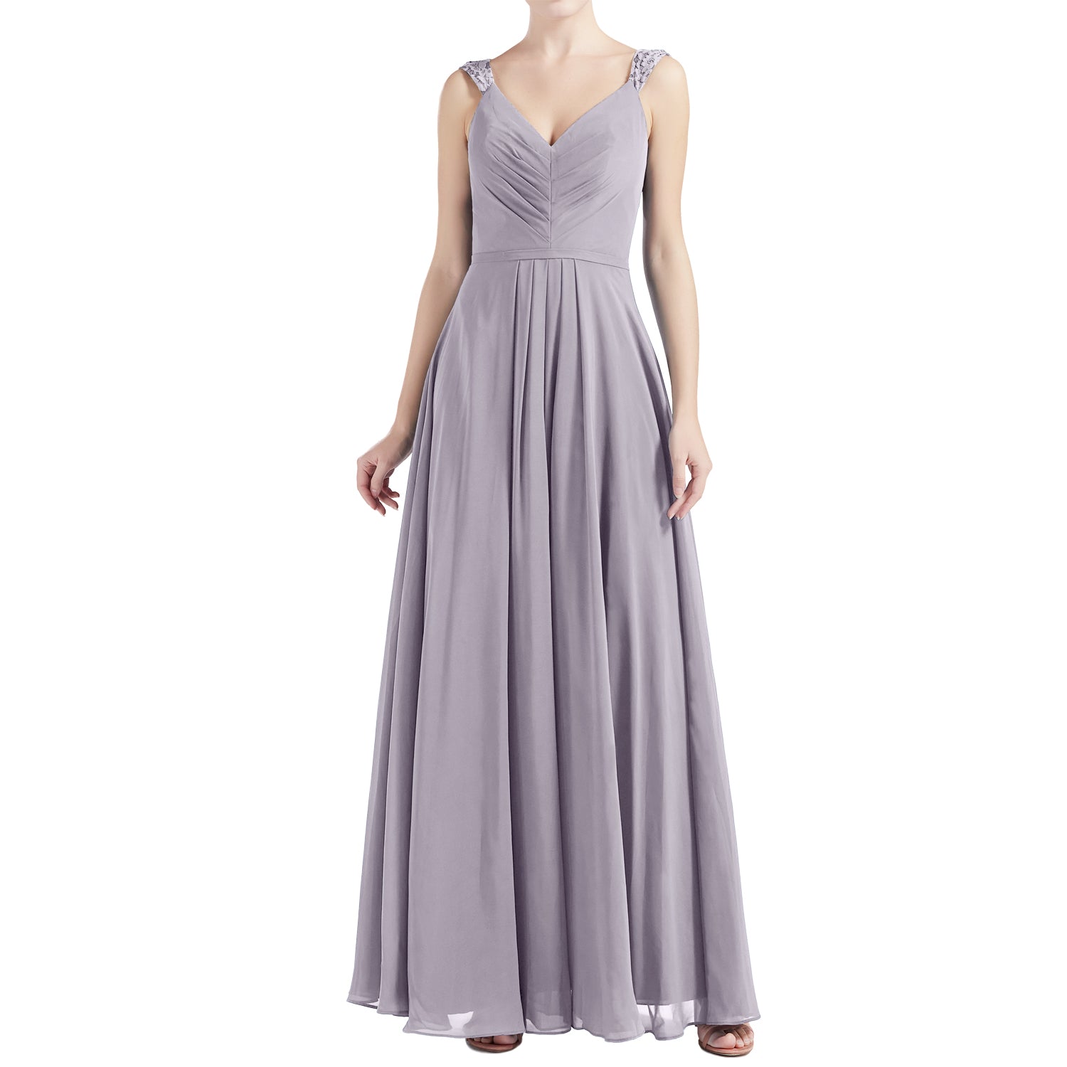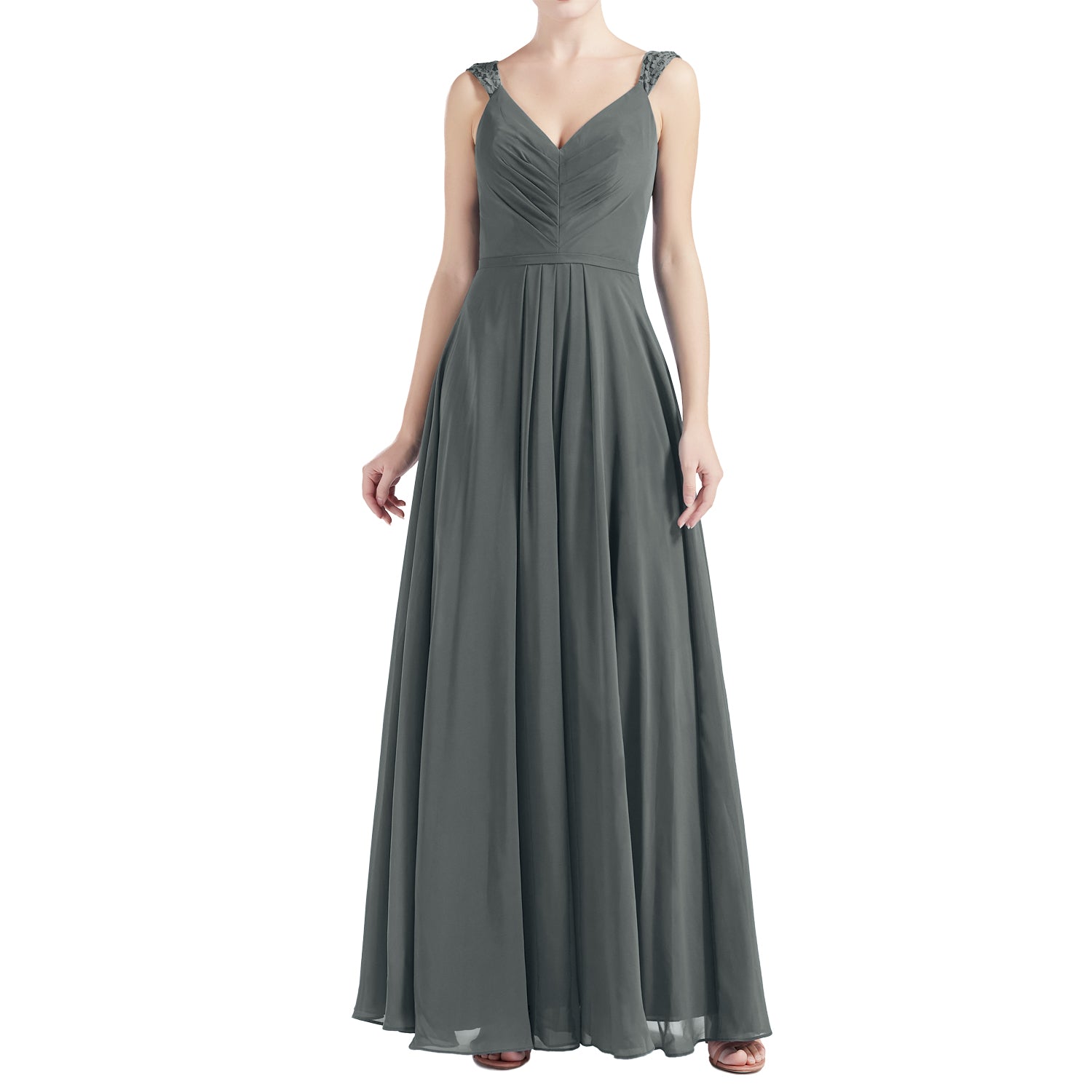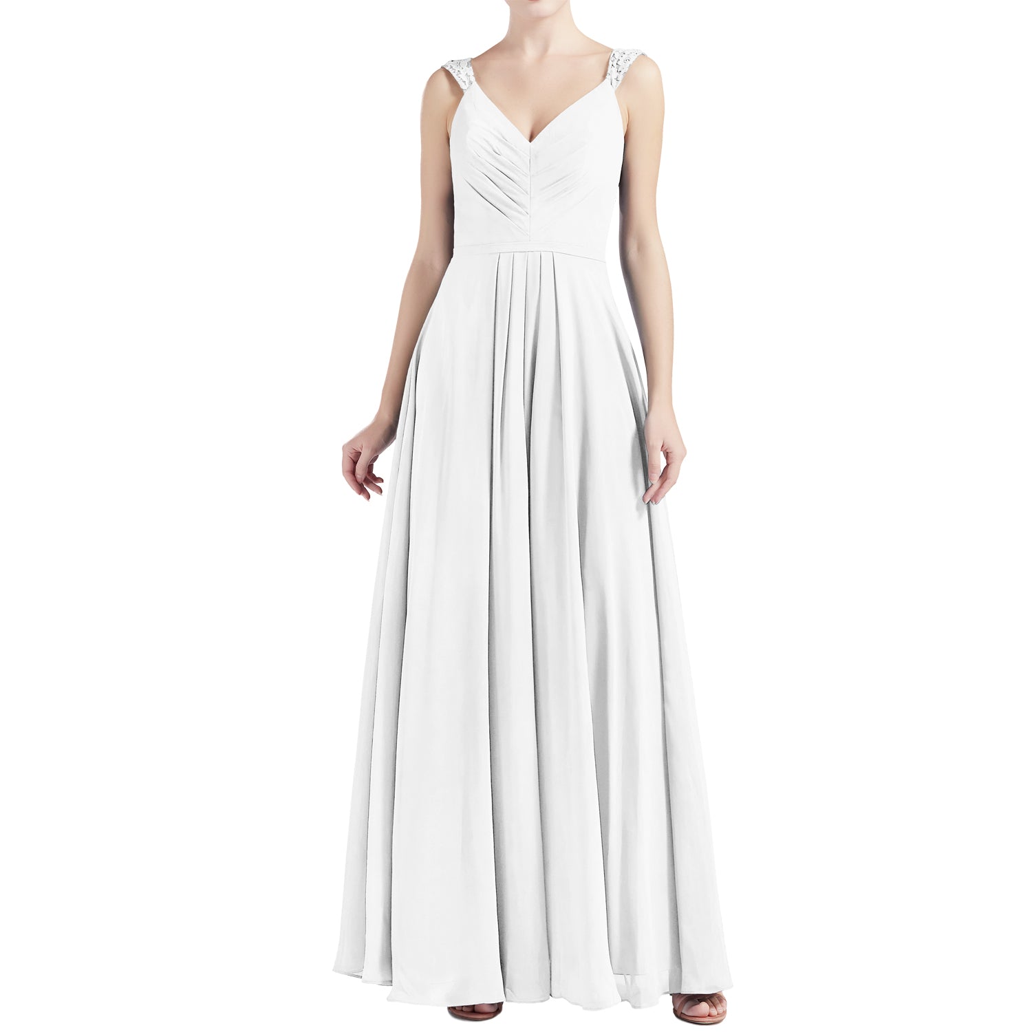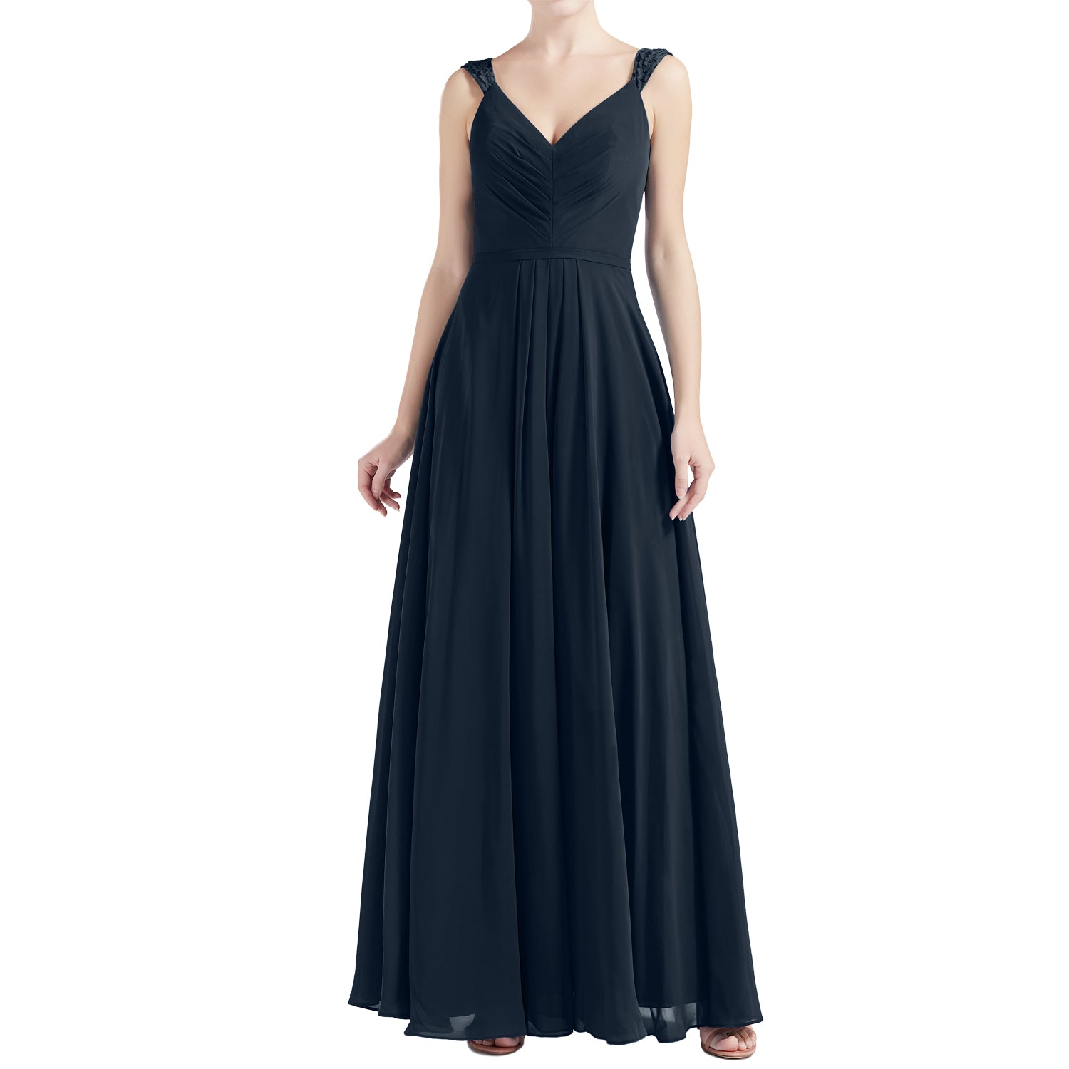 MACloth Women V Neck Lace Chiffon A Line Maxi Wedding Party Bridesmaid Dresses
