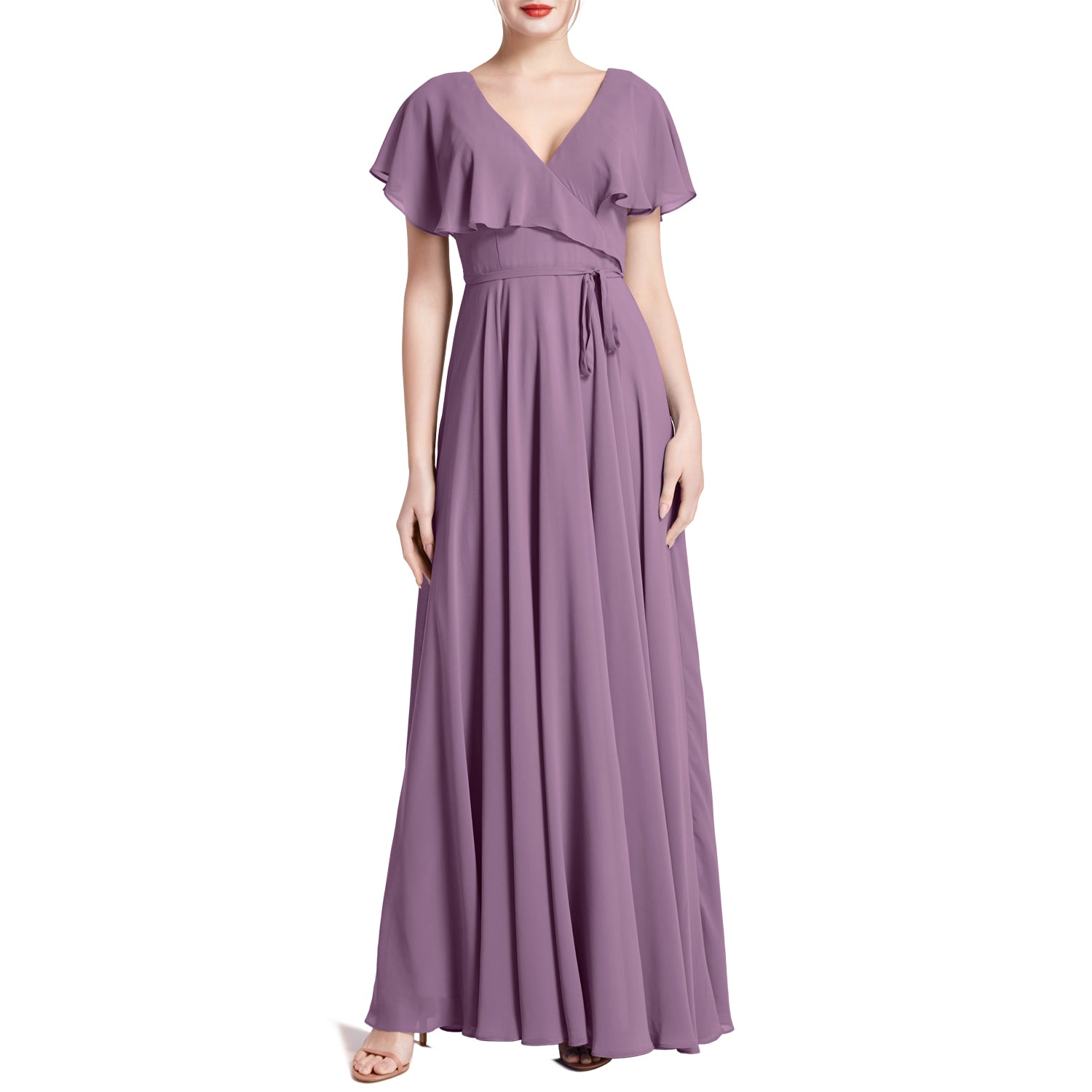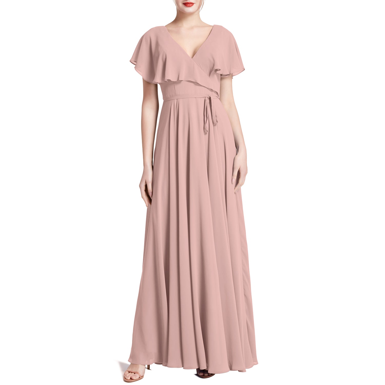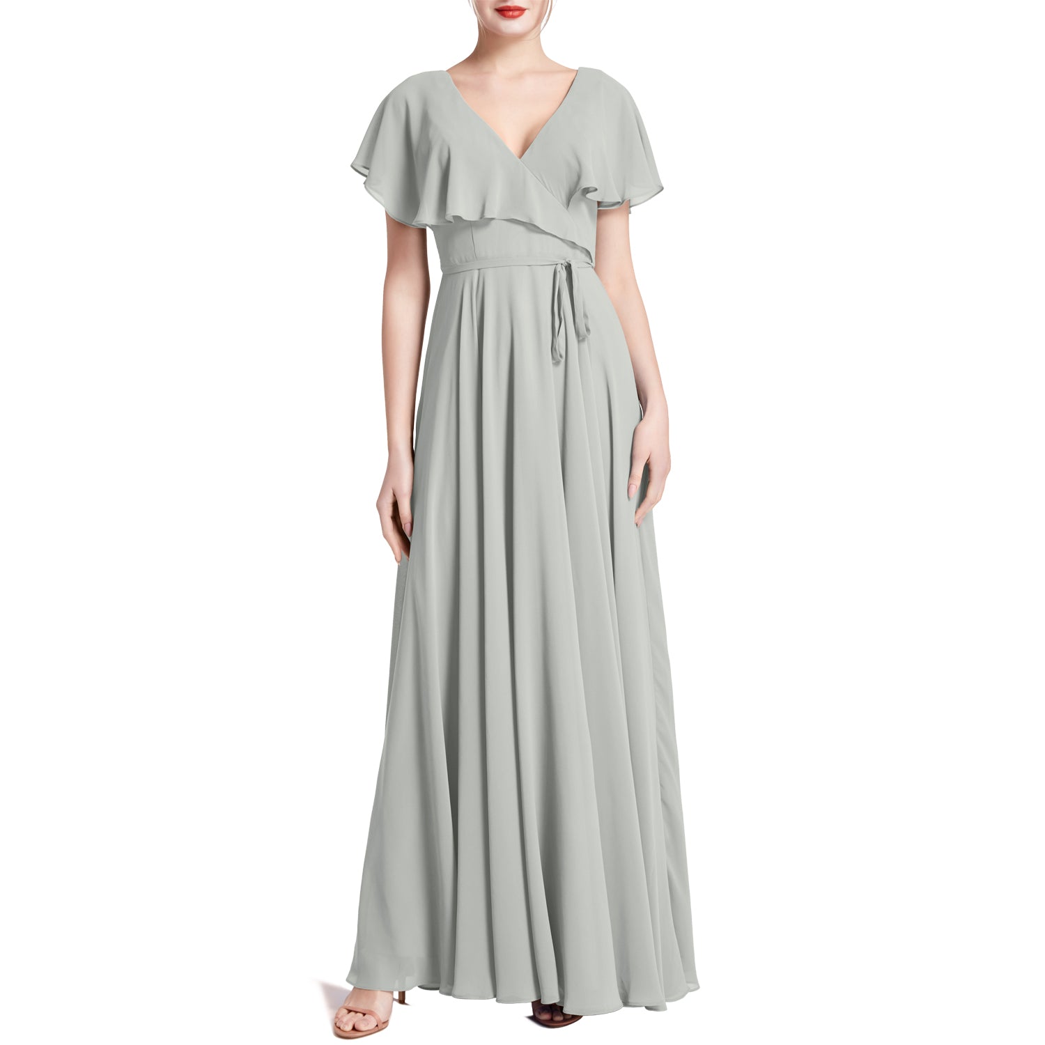 MACloth Women V Neck Ruffle BatWing Short Sleeve Maxi Wedding Bridesmaid Dresses
