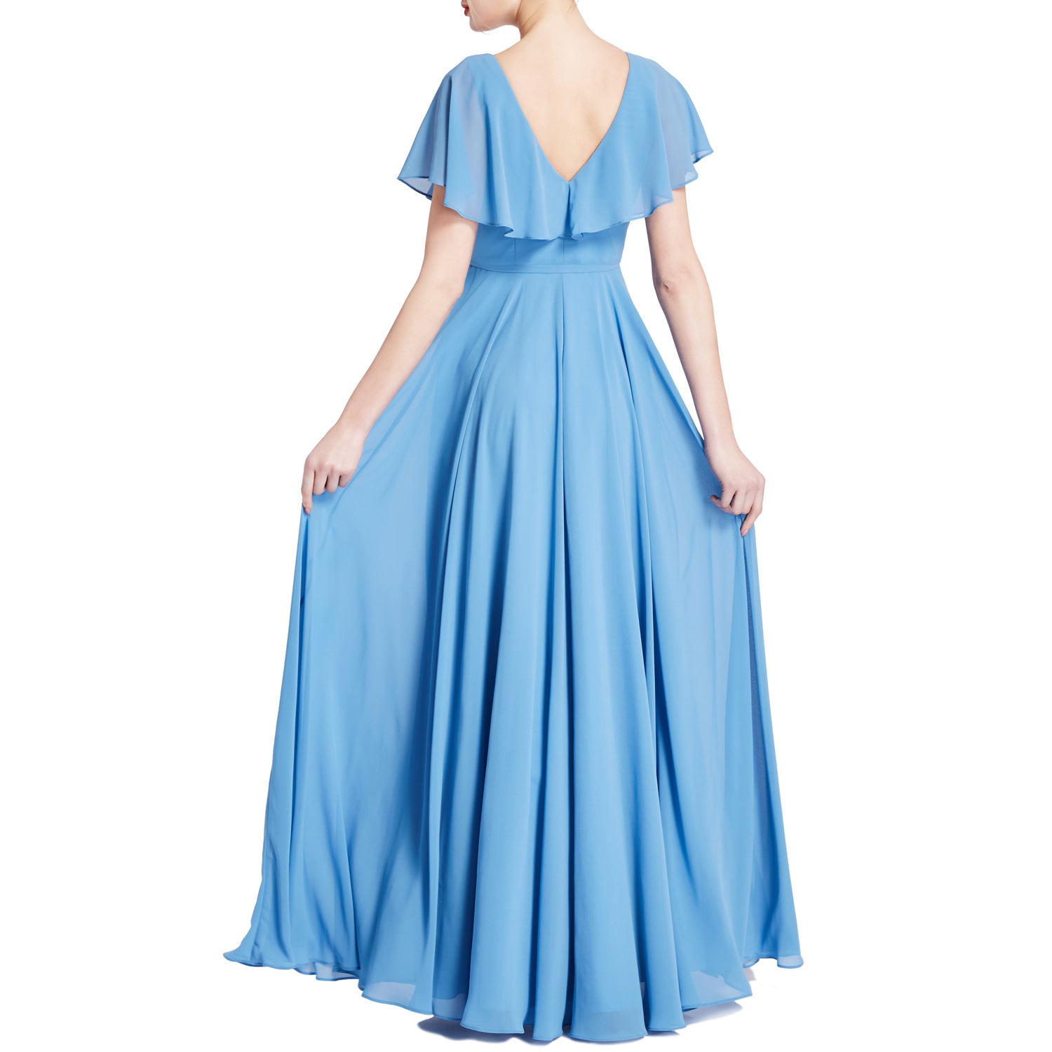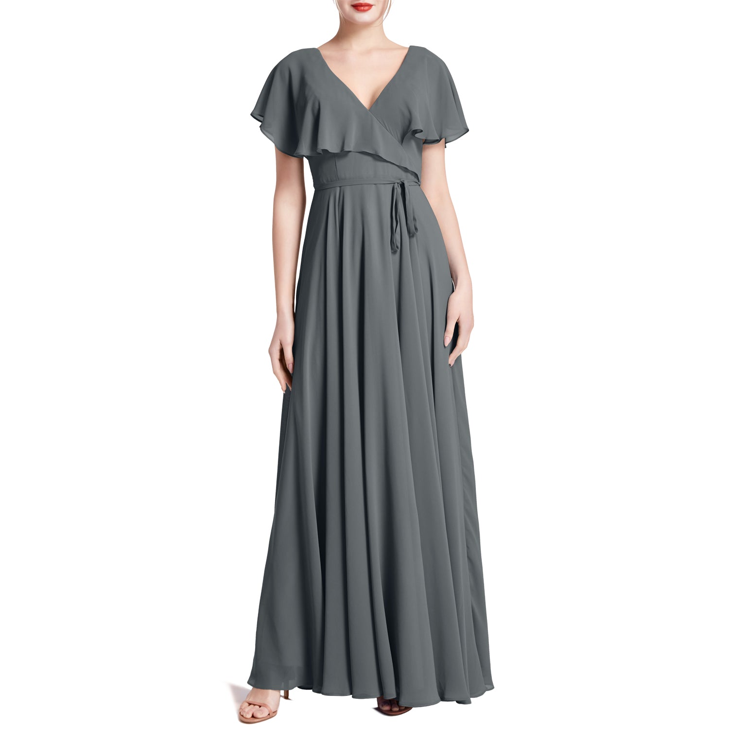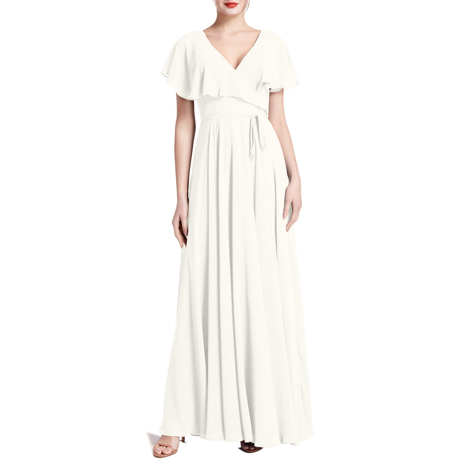 MACloth Women V Neck Ruffle BatWing Short Sleeve Maxi Wedding Bridesmaid Dresses