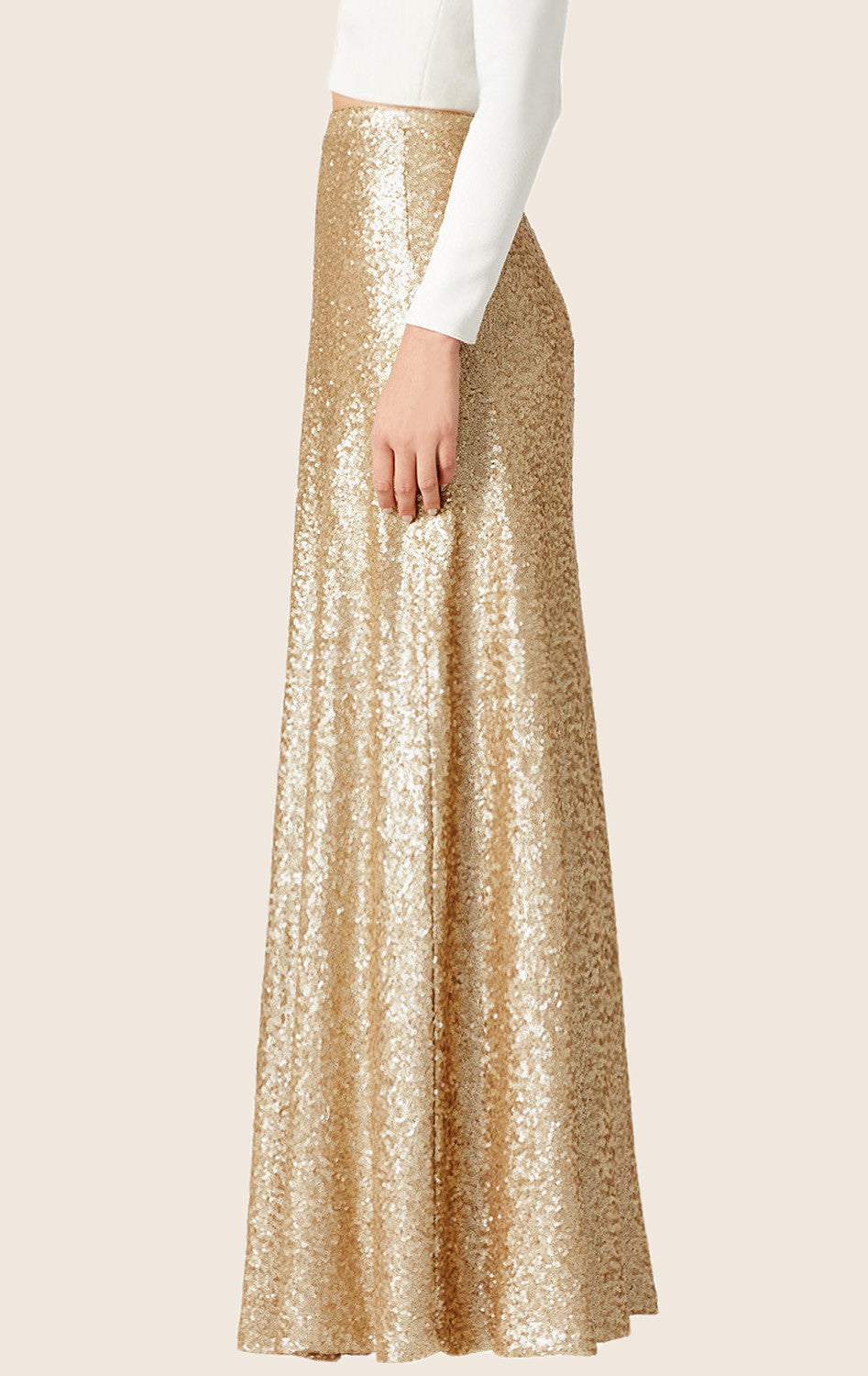 MACloth A Line Floor Length Sequin Skirt Maxi Skirt