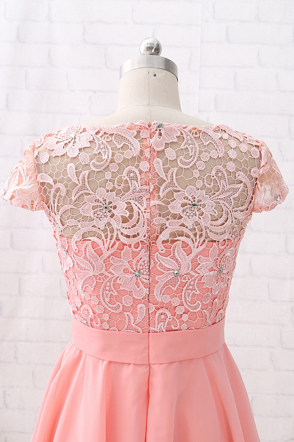 MACloth Cap Sleeves O Neck Lace Chiffon Mini Prom Homecoming Dress Peach Cocktail Dress
