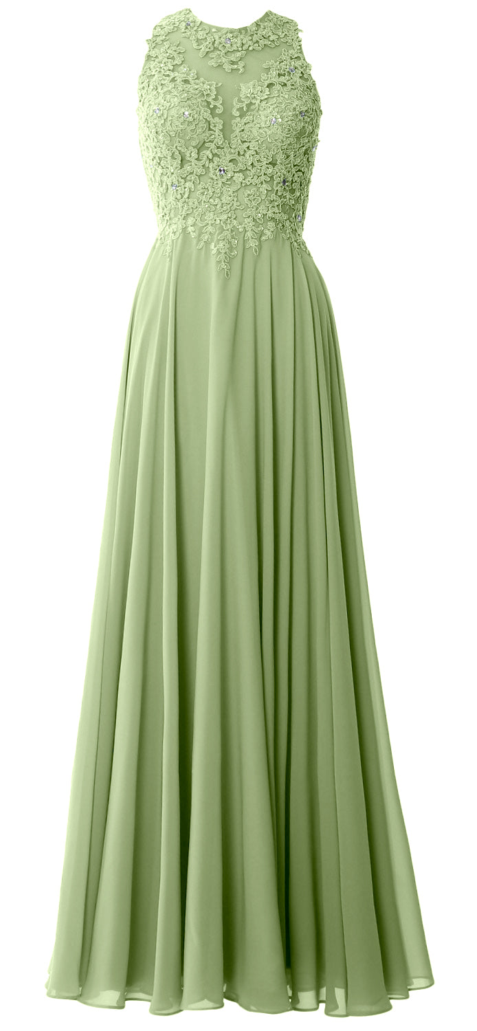 MACloth Elegant High Neck Long Prom Dress Lace Chiffon Formal Party Evening Gown