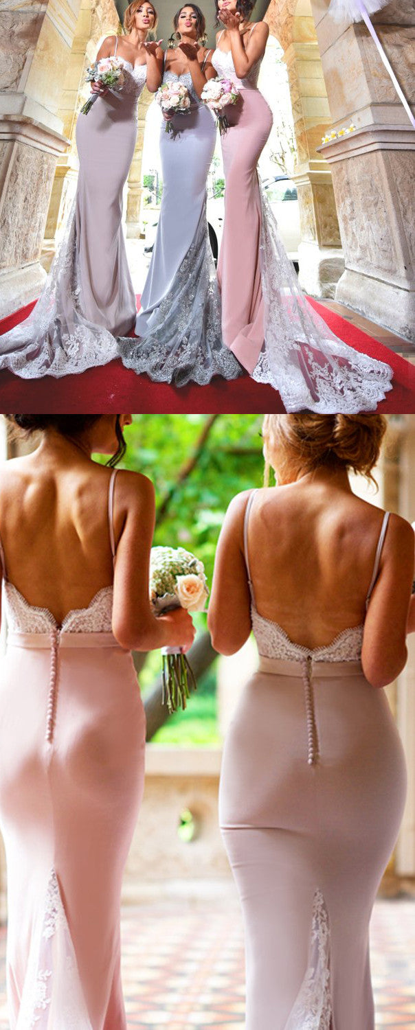 MACloth Mermaid Lace Jersey Long Bridesmaid Dress Pink Wedding Party Formal Gown