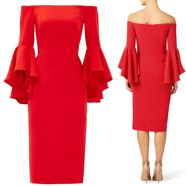 MACloth Off the Shoulder Midi Red Cocktail Dress Jersey Formal Gown