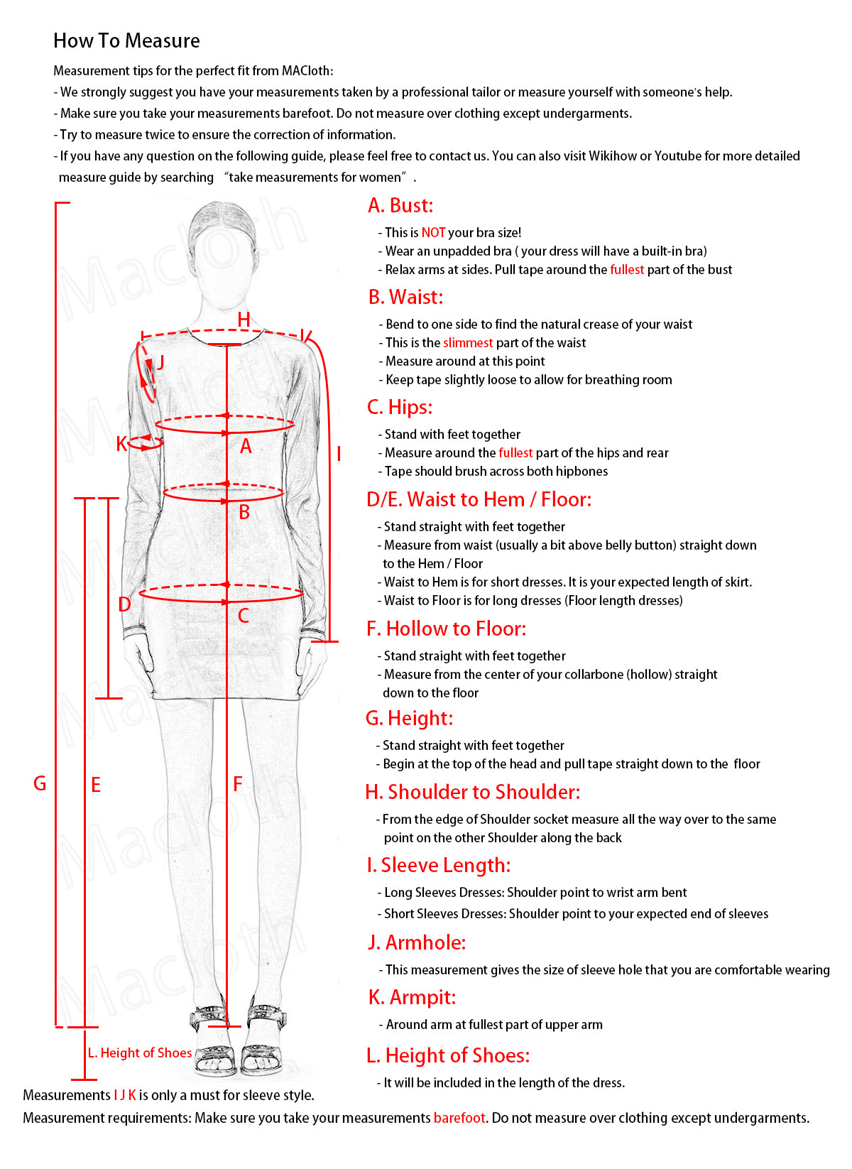 - D. Waist to Hem:__________;(Essential for short dresses)